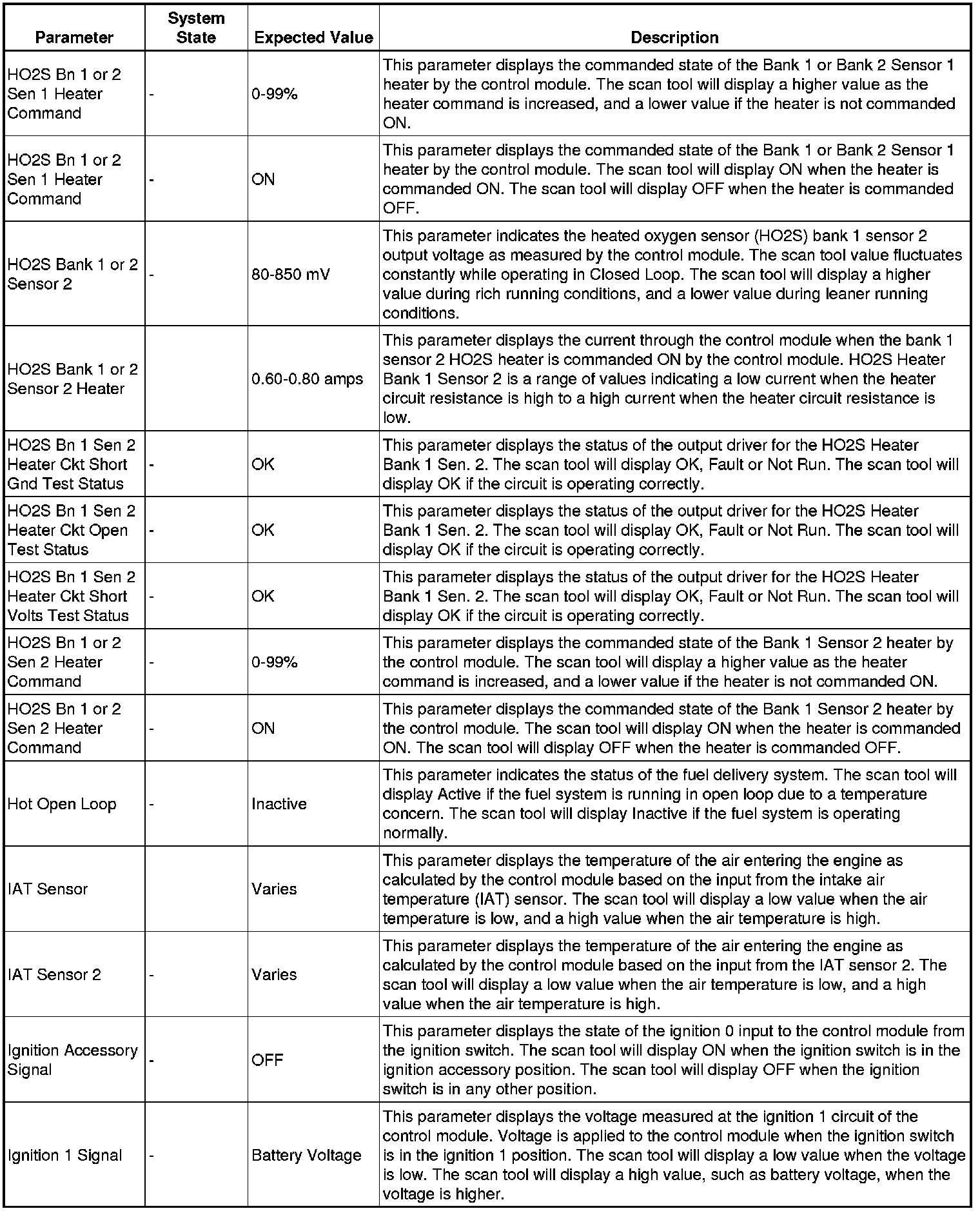 The scan tool values from a properly running engine may be used for comparison with the engine you are diagnosing. The engine scan tool data list represents values that would be seen on a normally running engine.