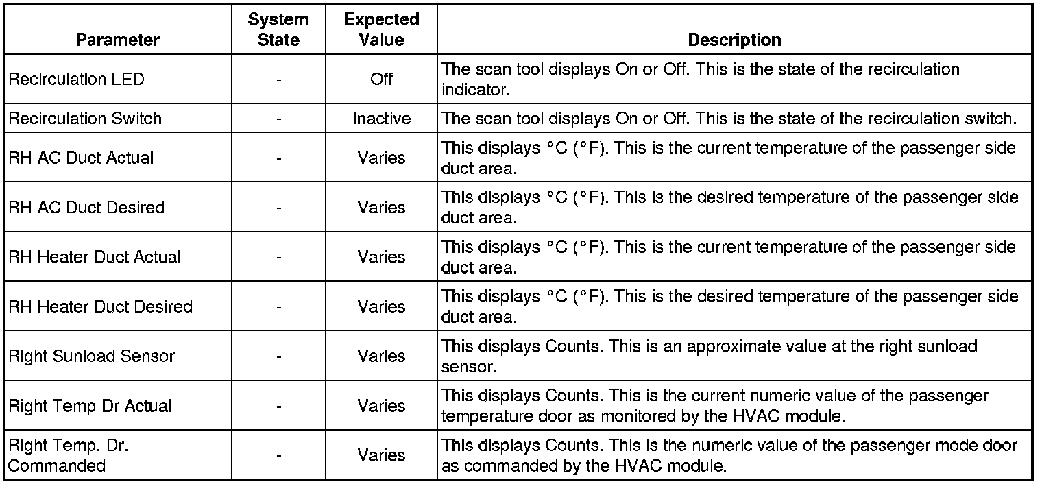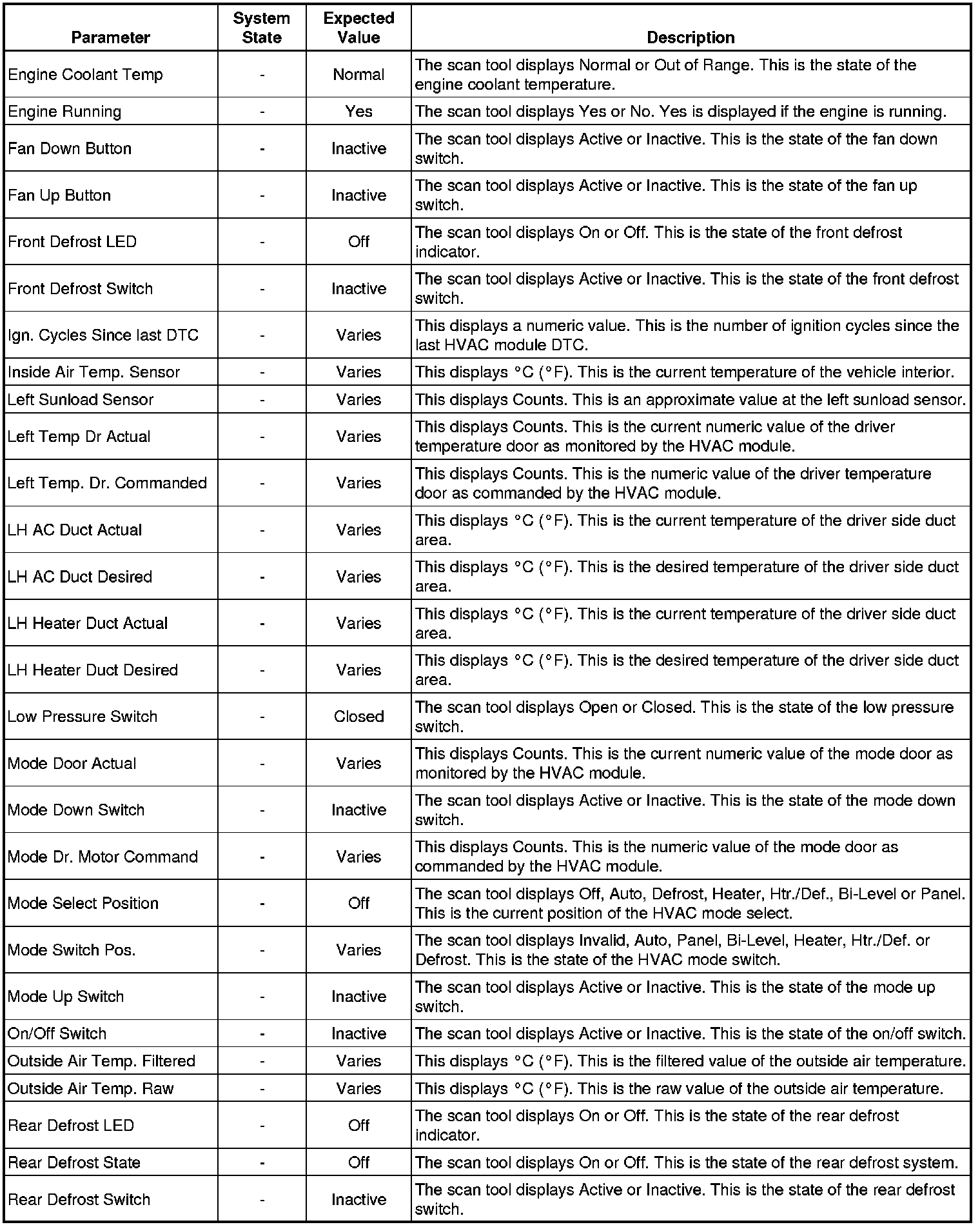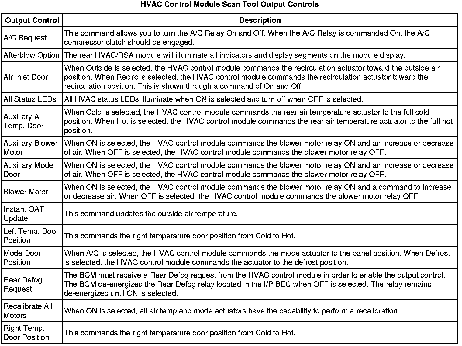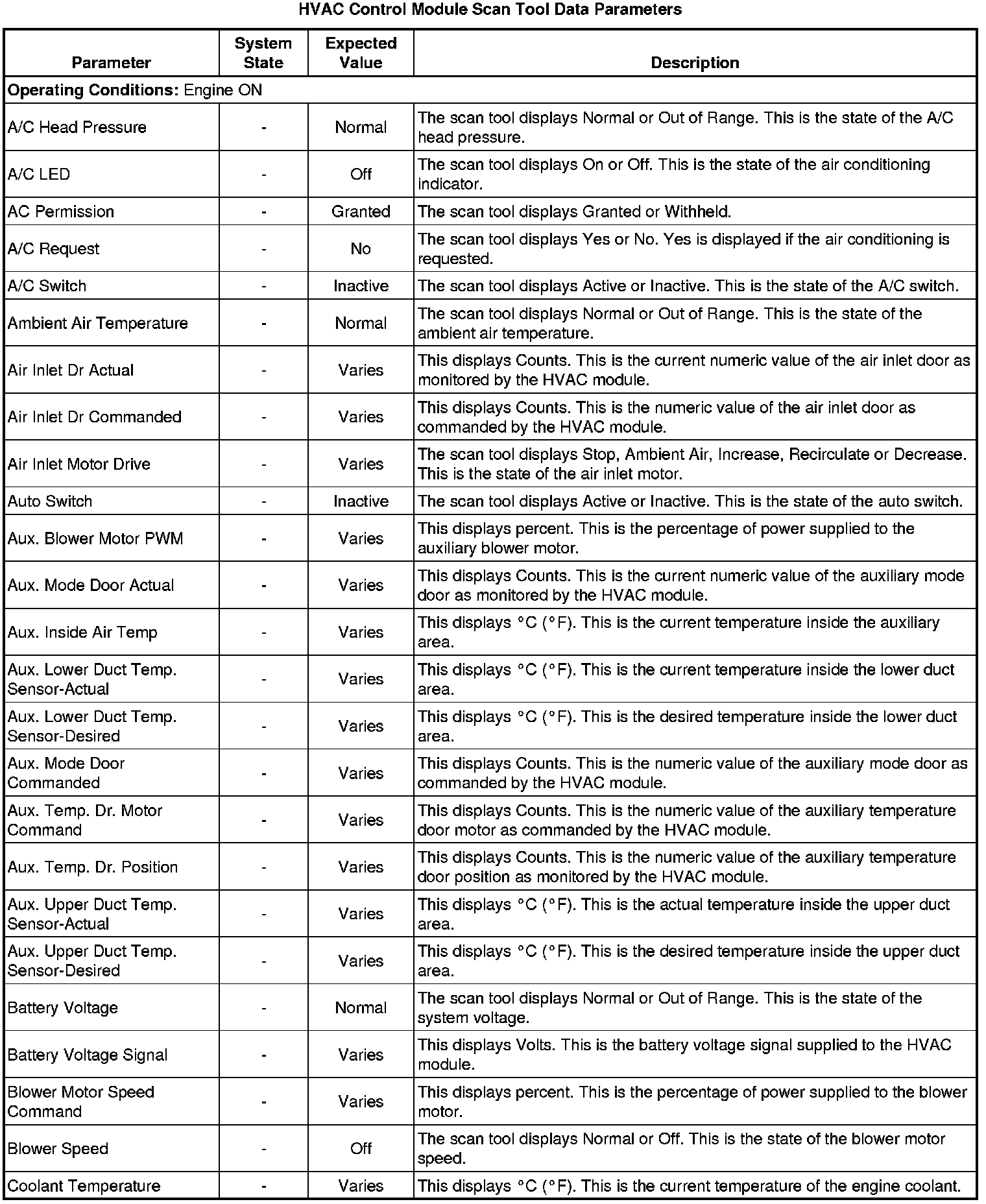 Heating, Ventilation and Air Conditioning Control Module Scan Tool Information