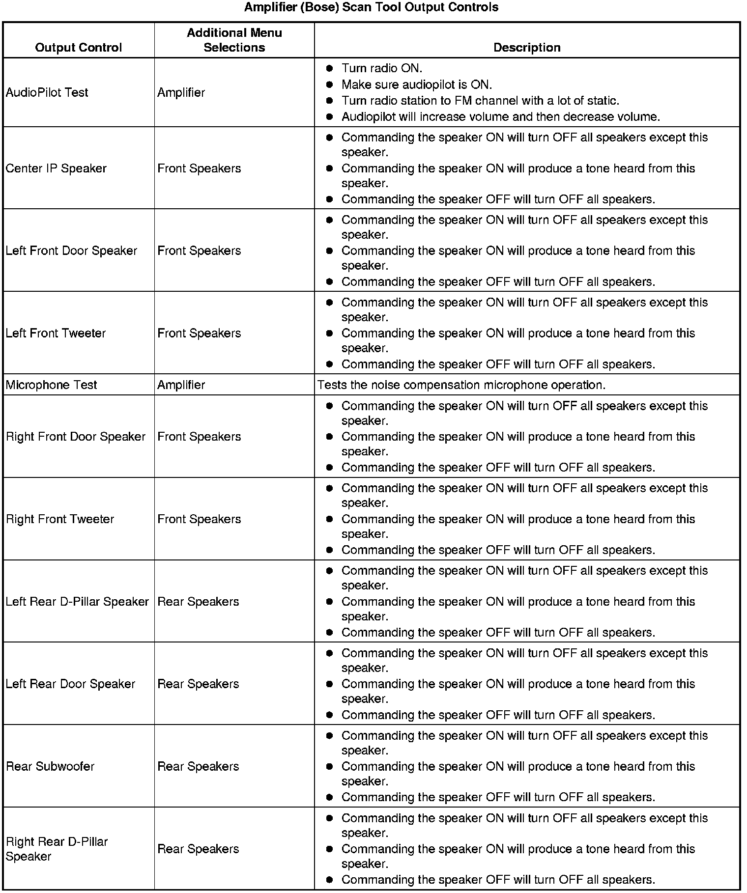 Radio Speaker Amplifier Scan Tool Information