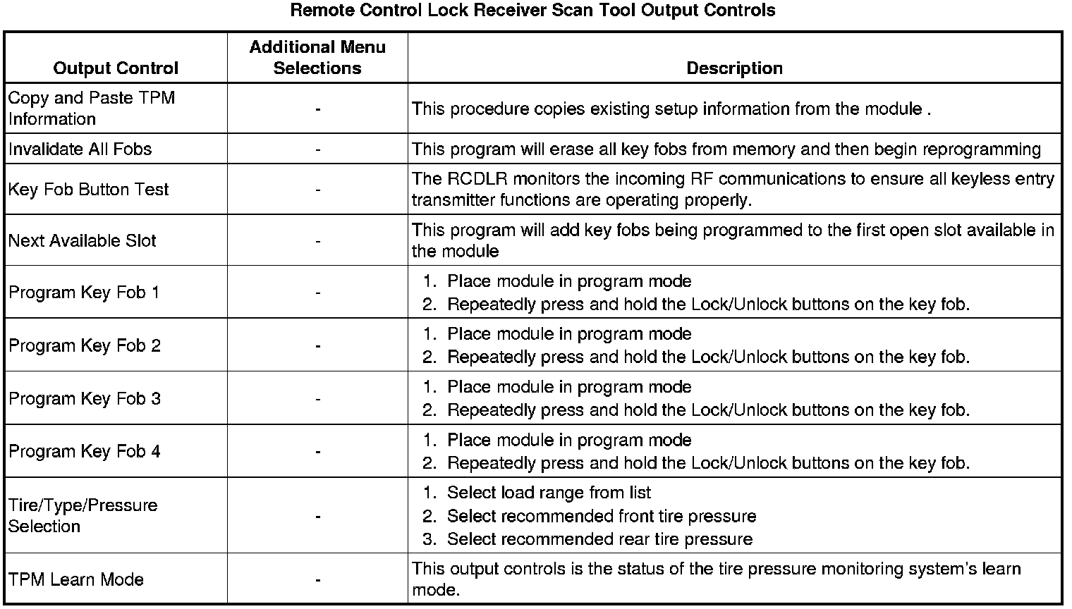Remote Control Door Lock Receiver Scan Tool Information