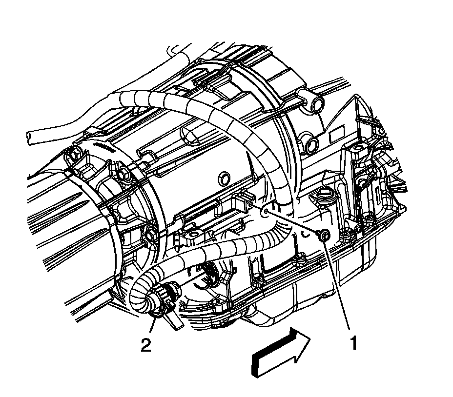 7. Connect the transmission oil cooler lines to the transmission. Refer to Transmission Fluid Cooler Hose/Pipe Replacement (Transmission Fluid Cooler Hose/Pipe Replacement).