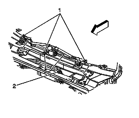 2. Install the bolts (1) retaining the wiper transmission to the vehicle.