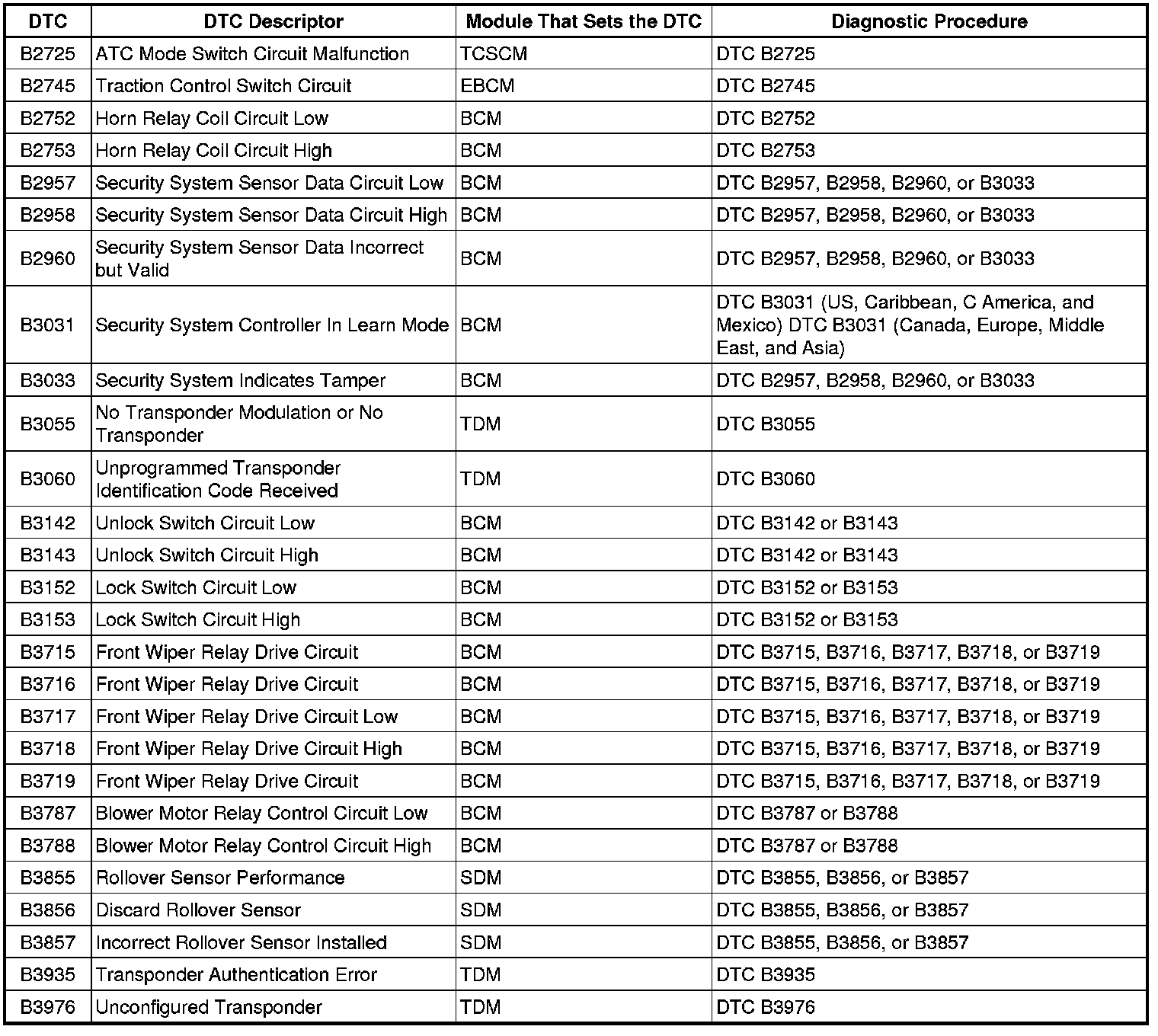 This master DTC list includes all applicable DTCs in alphanumeric order with descriptors.