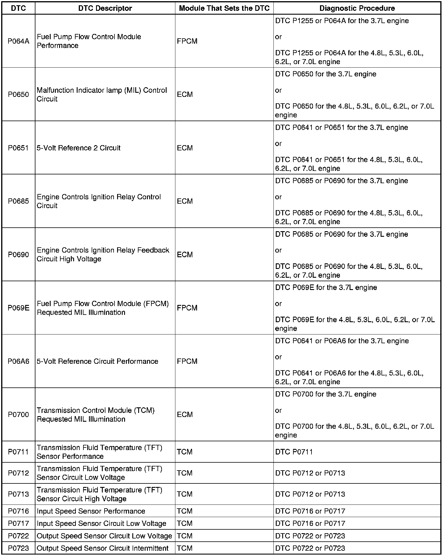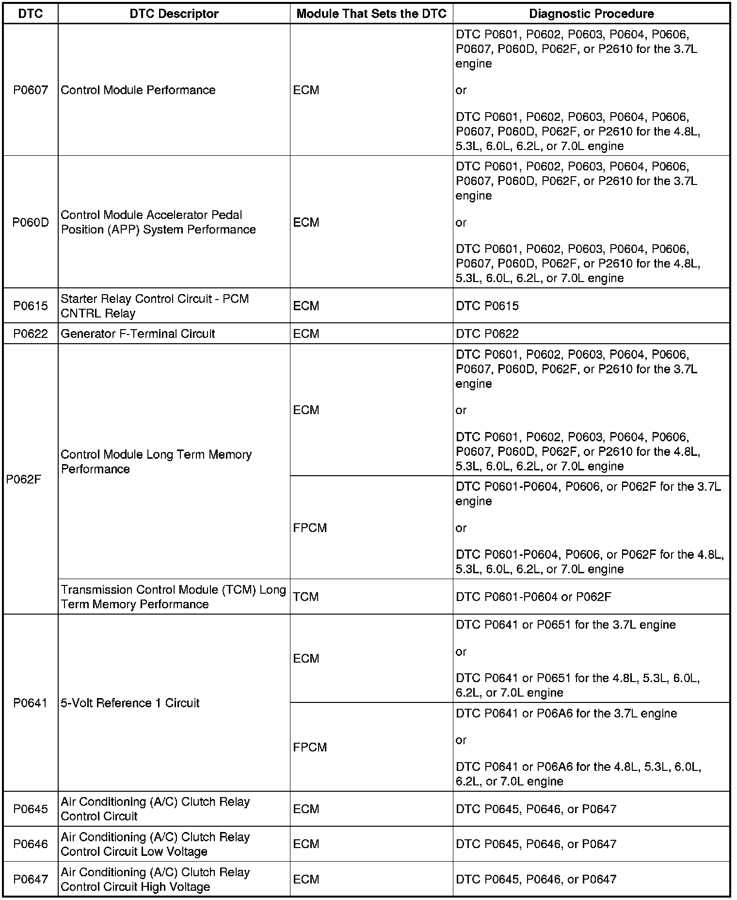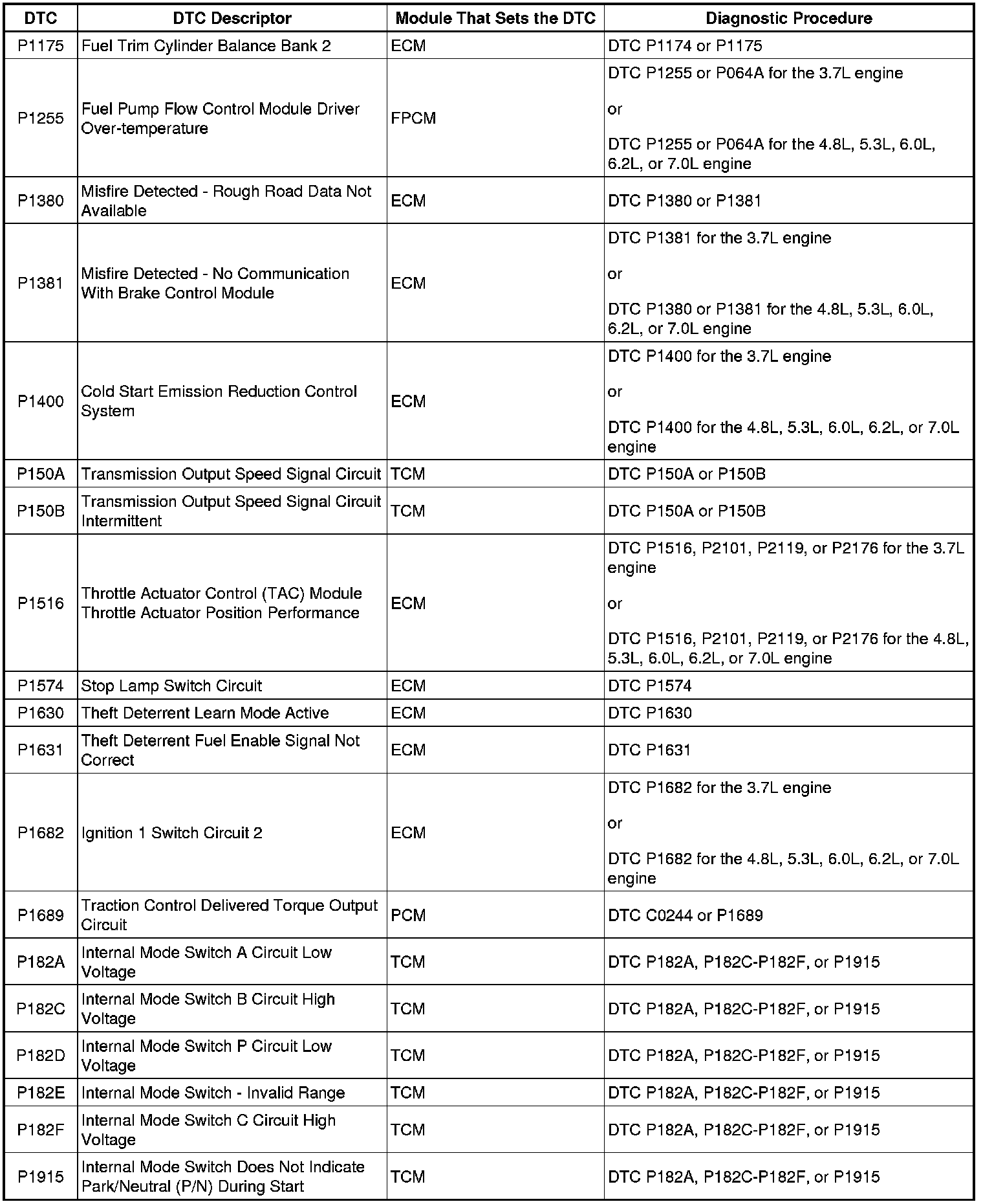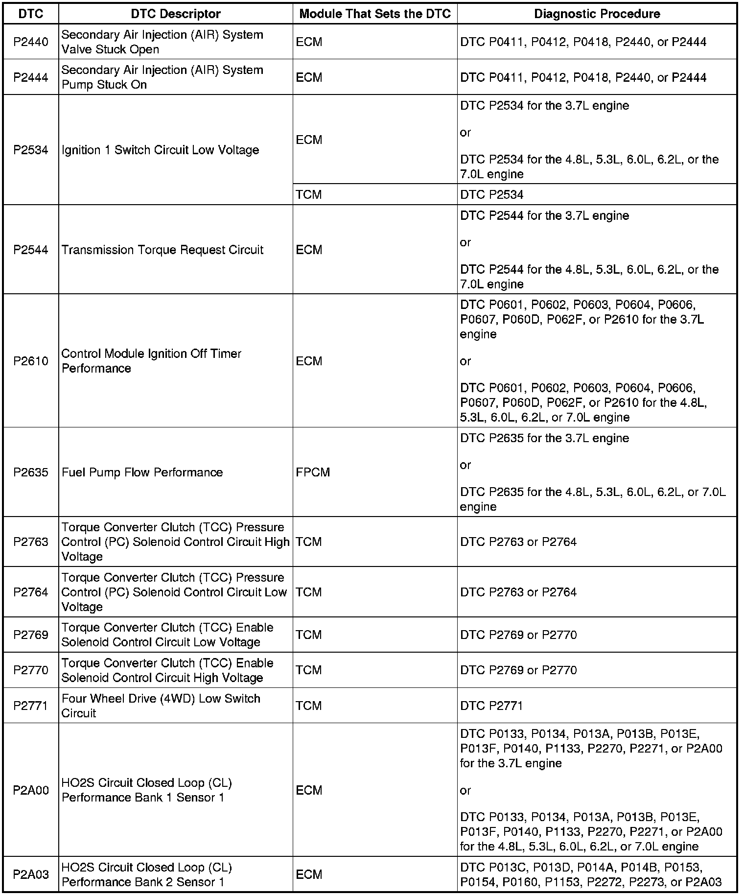 Diagnostic Trouble Code (DTC) List - VehicleThis master DTC list includes all applicable DTCs in alphanumeric order with descriptors.