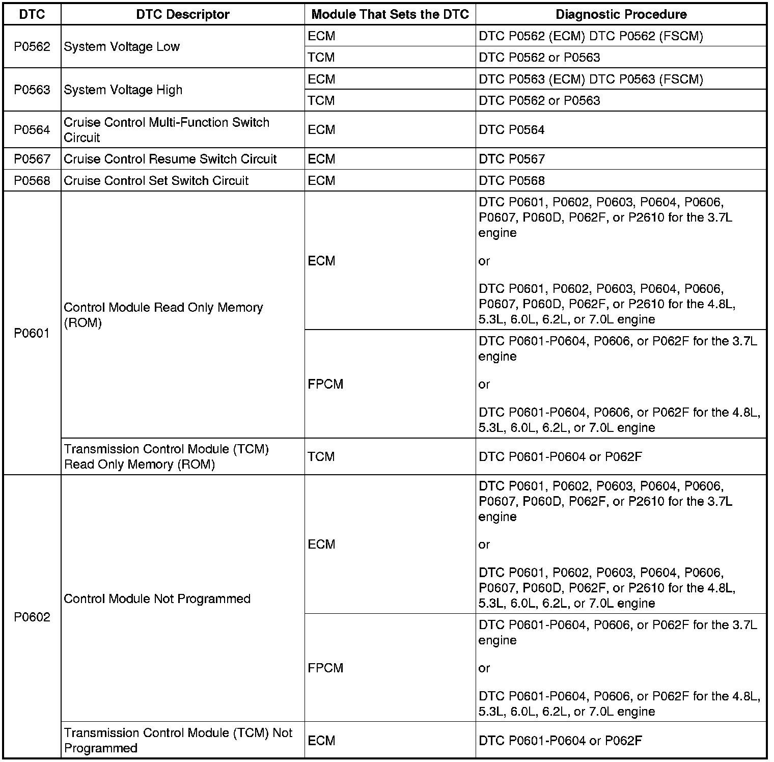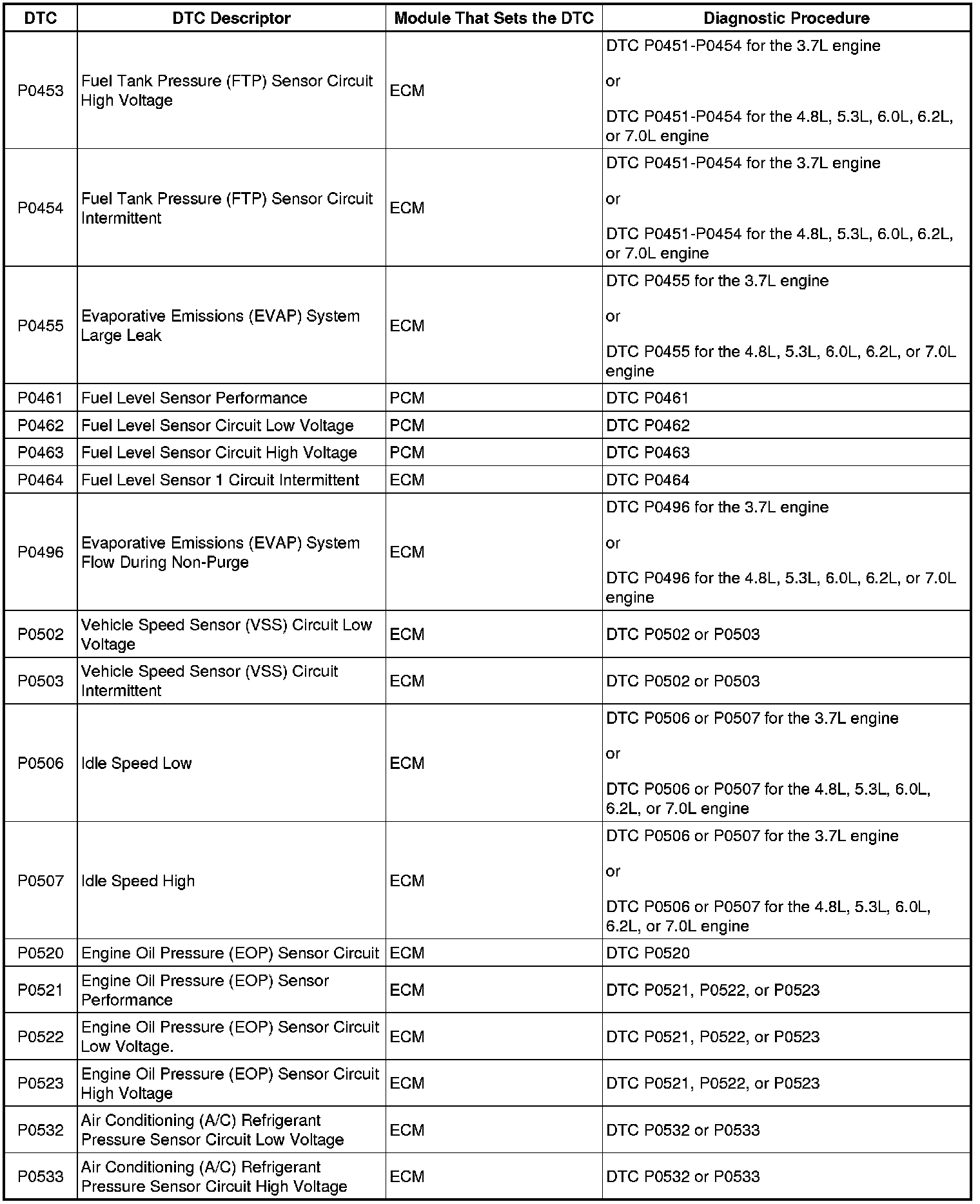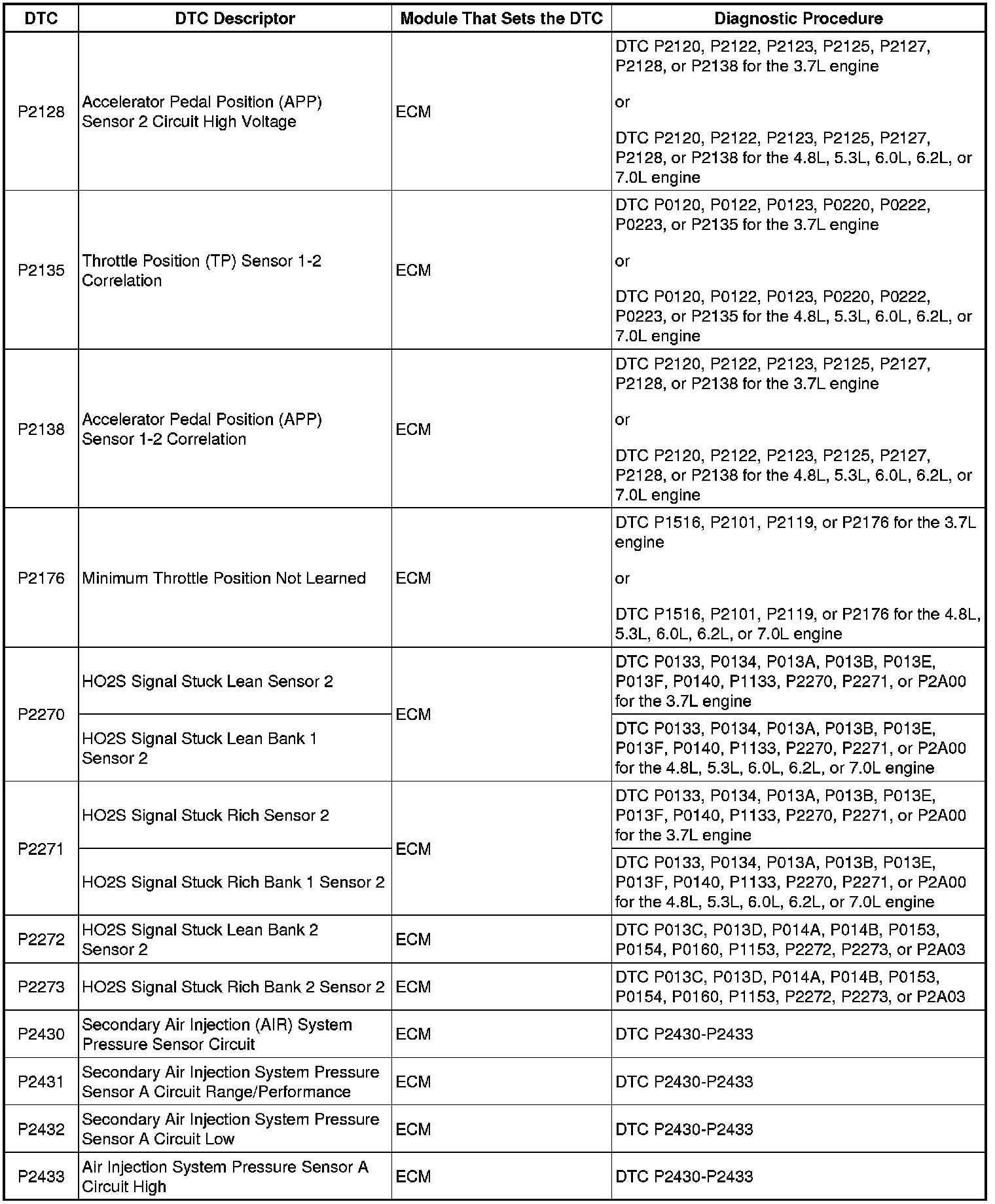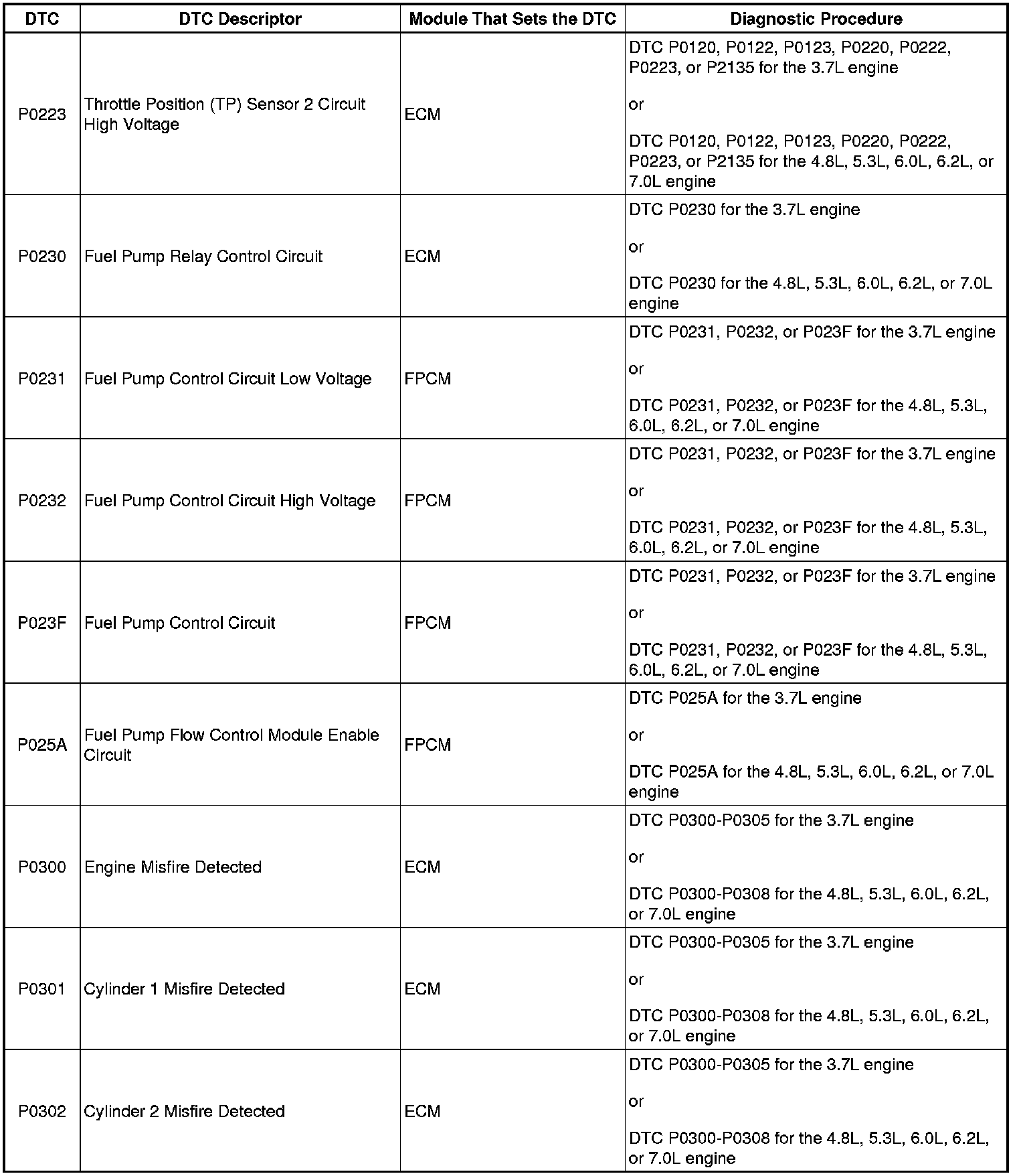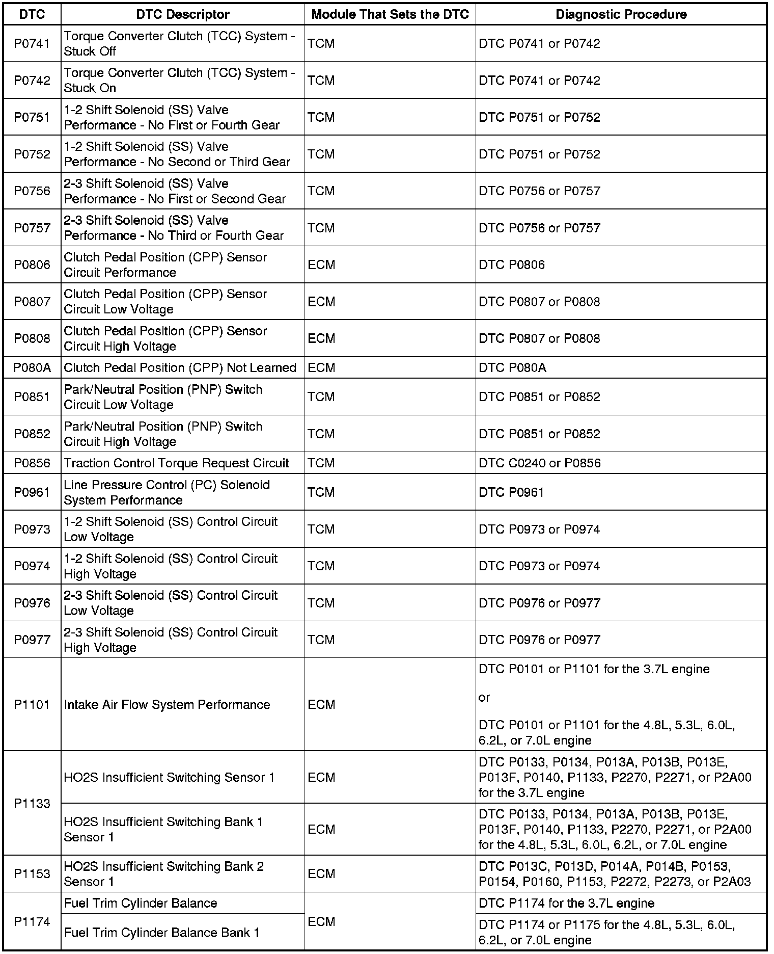 Diagnostic Trouble Code (DTC) List - VehicleThis master DTC list includes all applicable DTCs in alphanumeric order with descriptors.