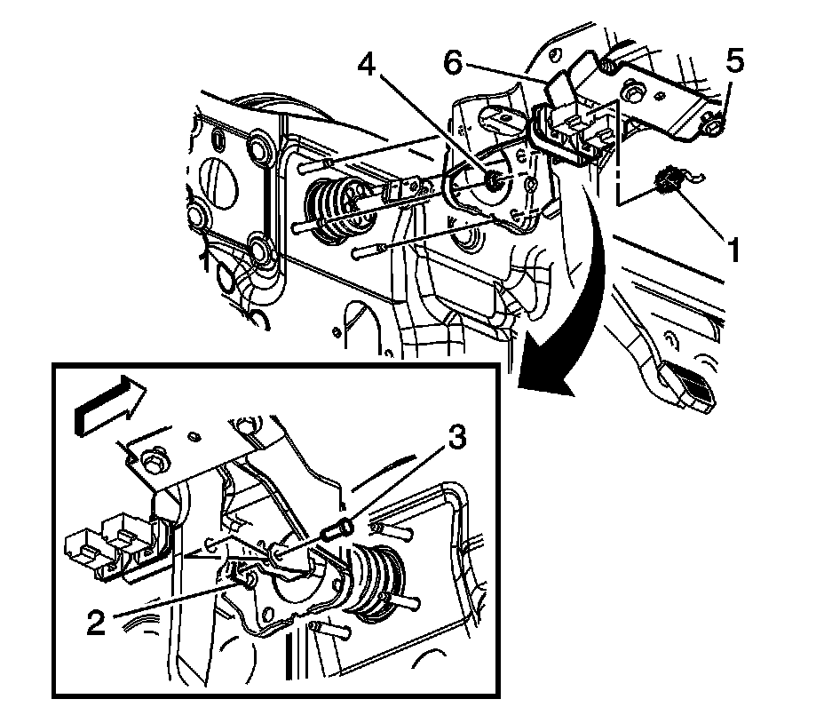 9. Remove the brake pedal assembly (6).