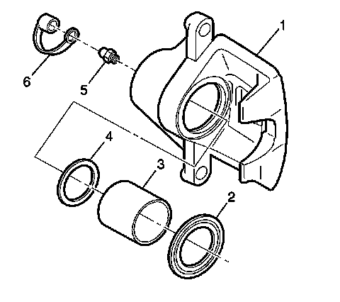 1. Inspect the brake caliper housing (1) for cracks, excess wear, and/or damage. If any of these conditions are present, the brake caliper requires replacement.
