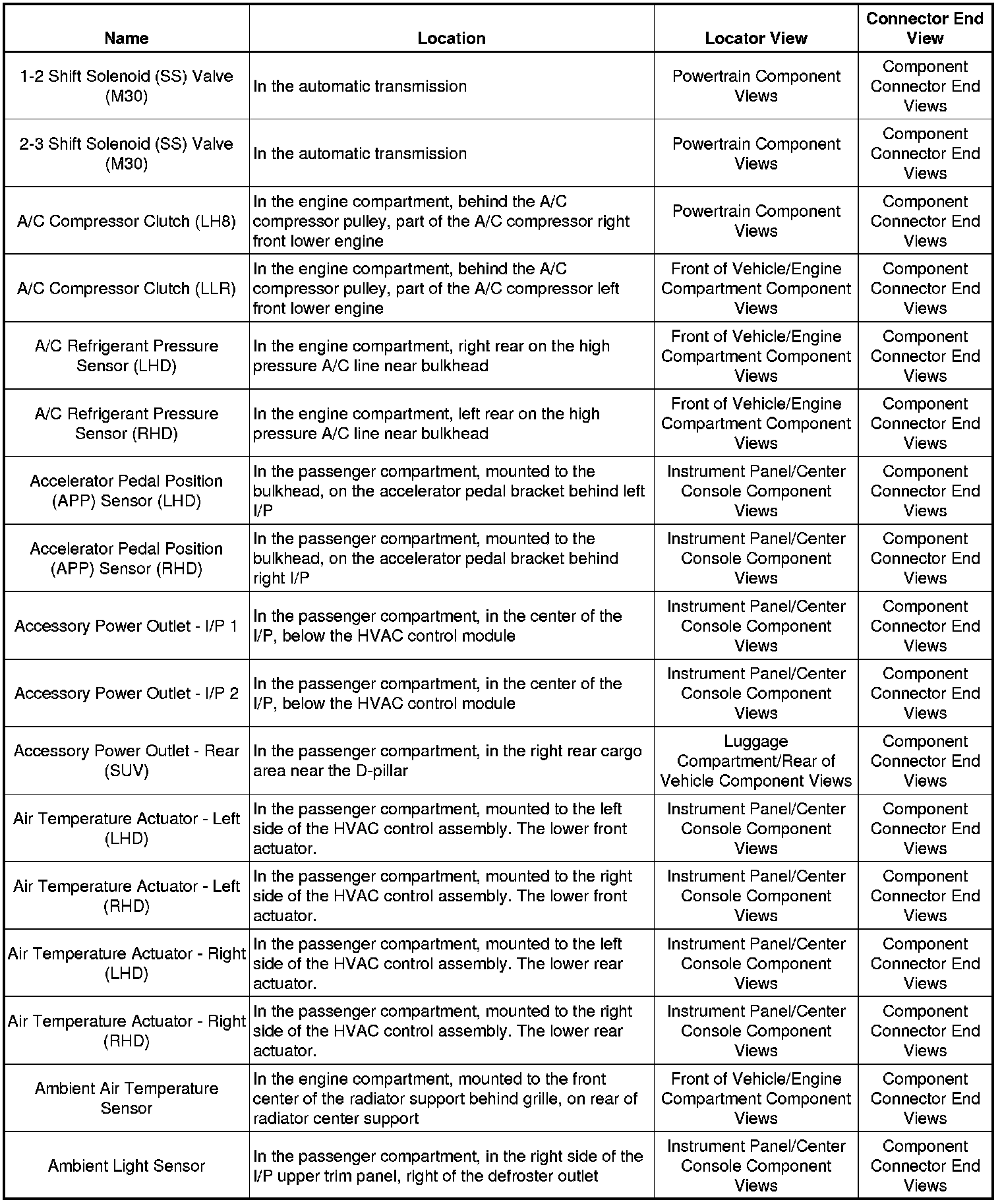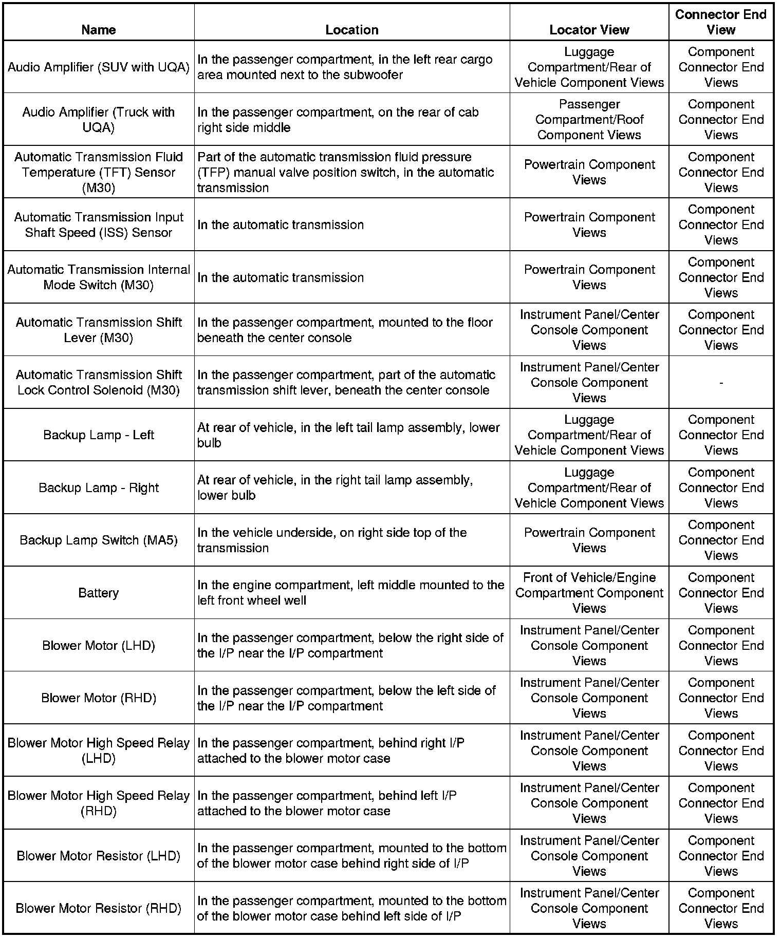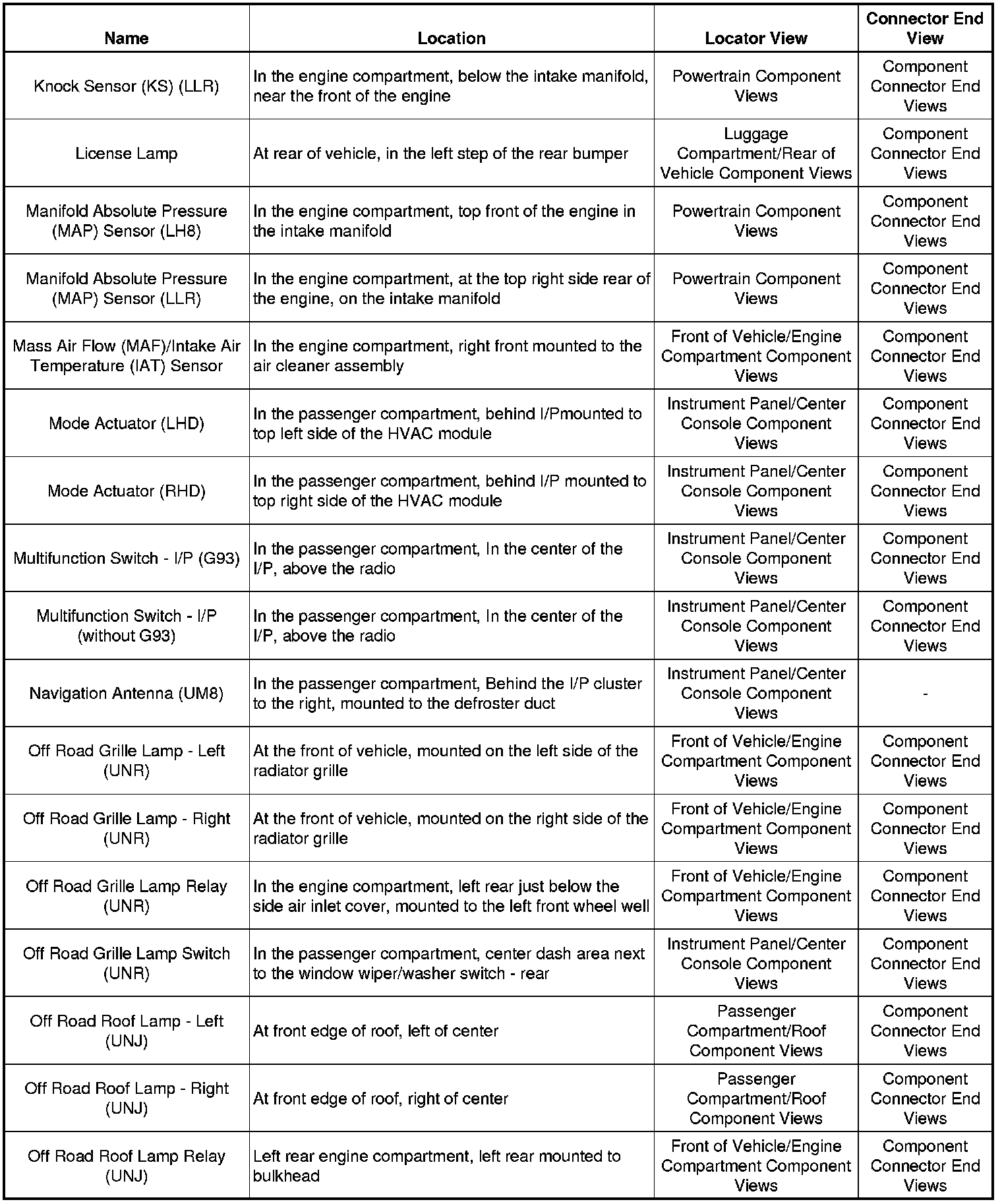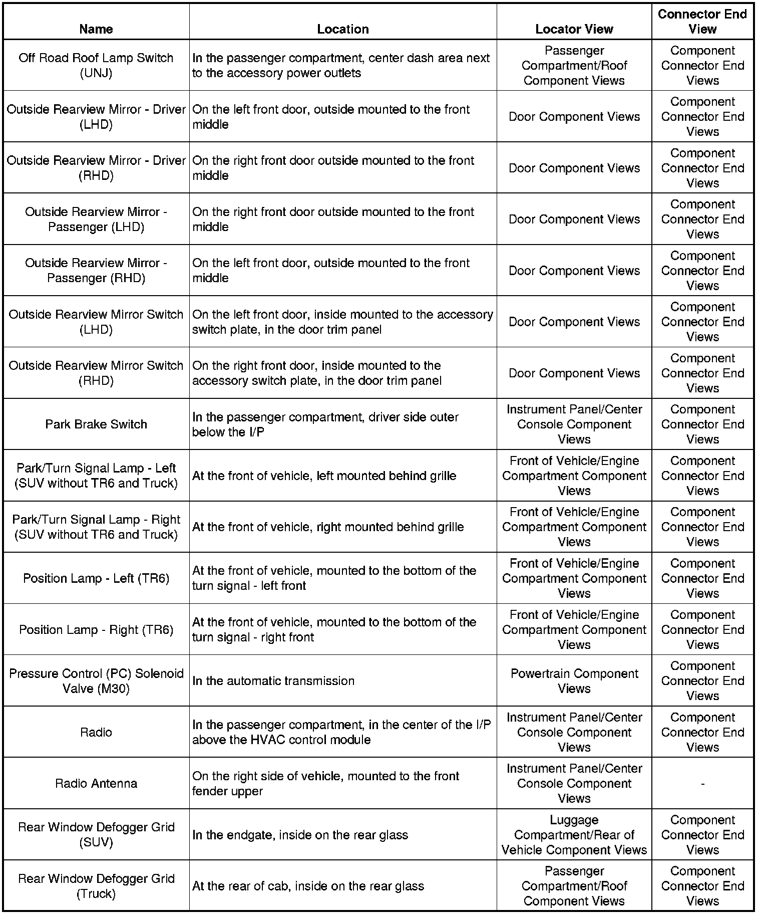 Master Electrical Component List