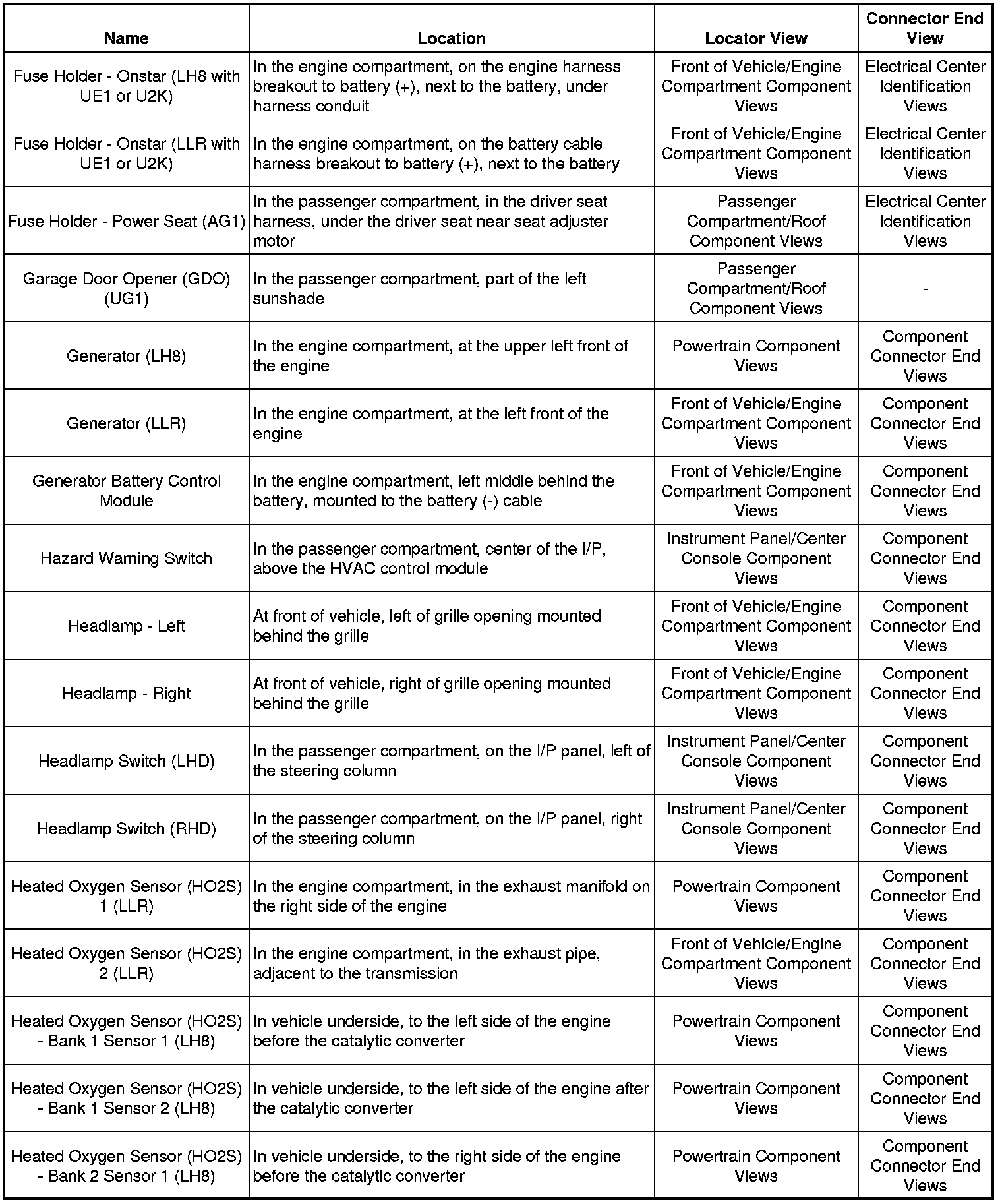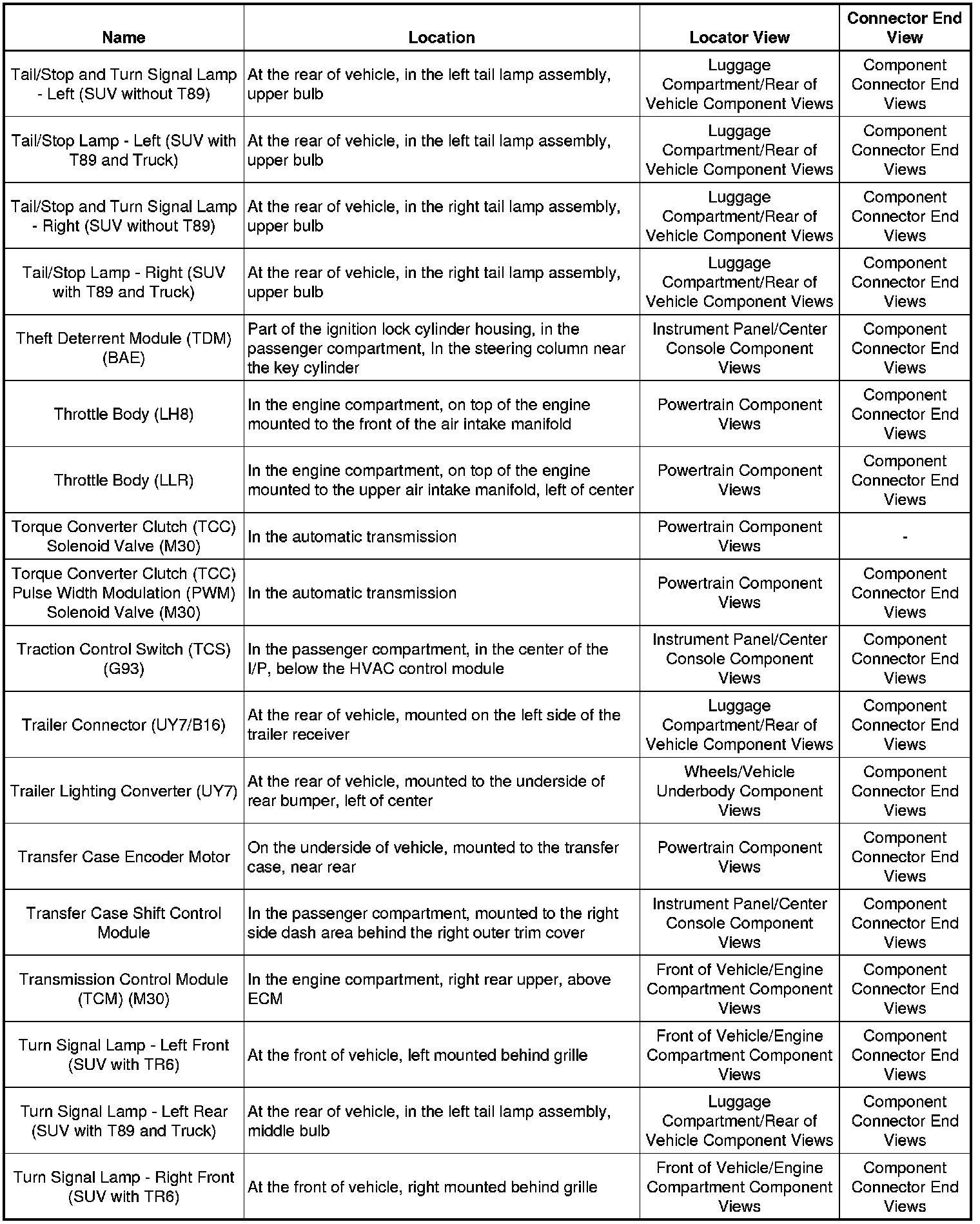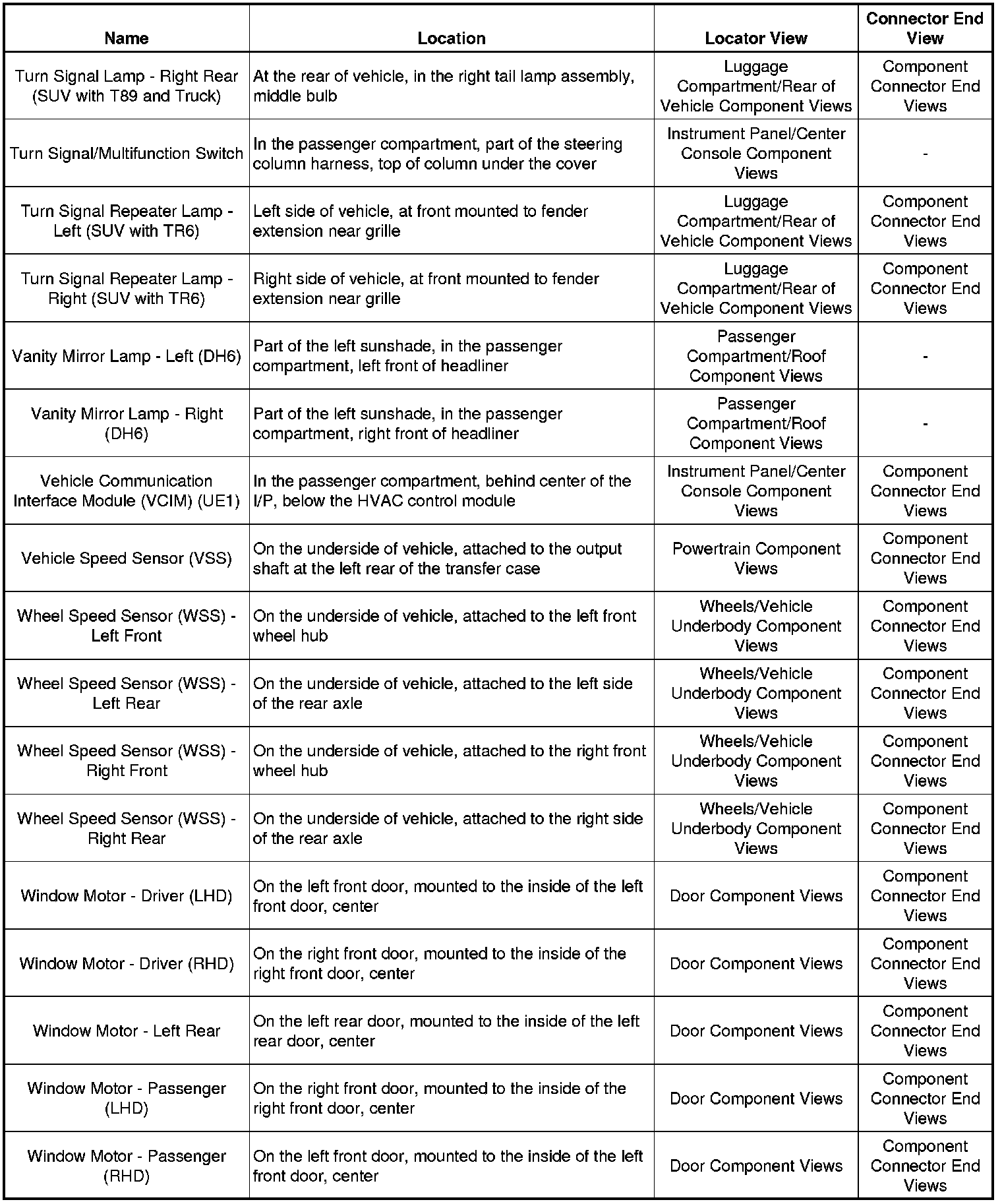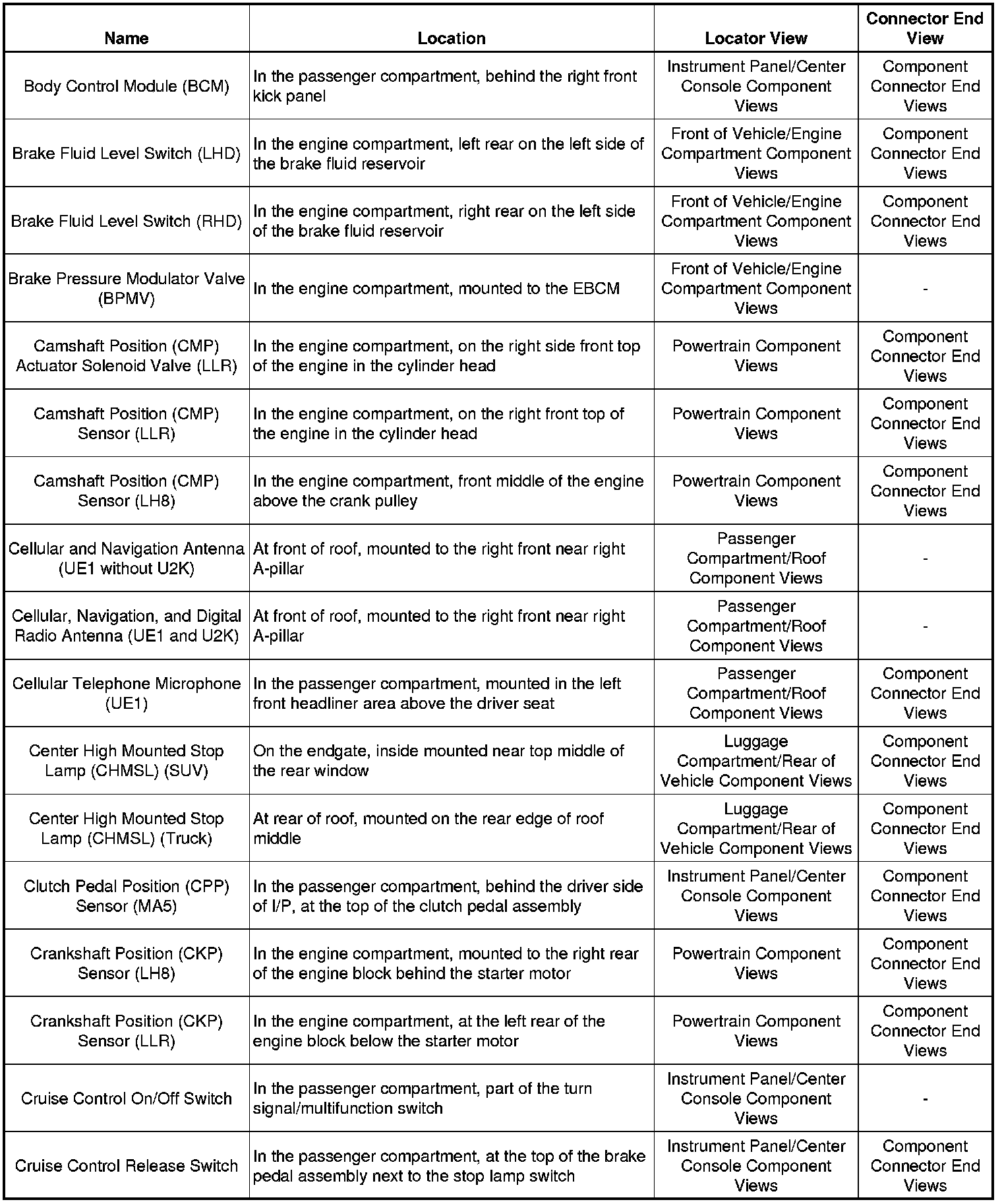 Master Electrical Component List
