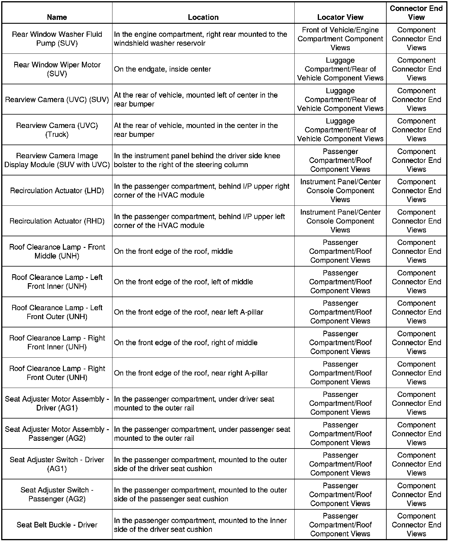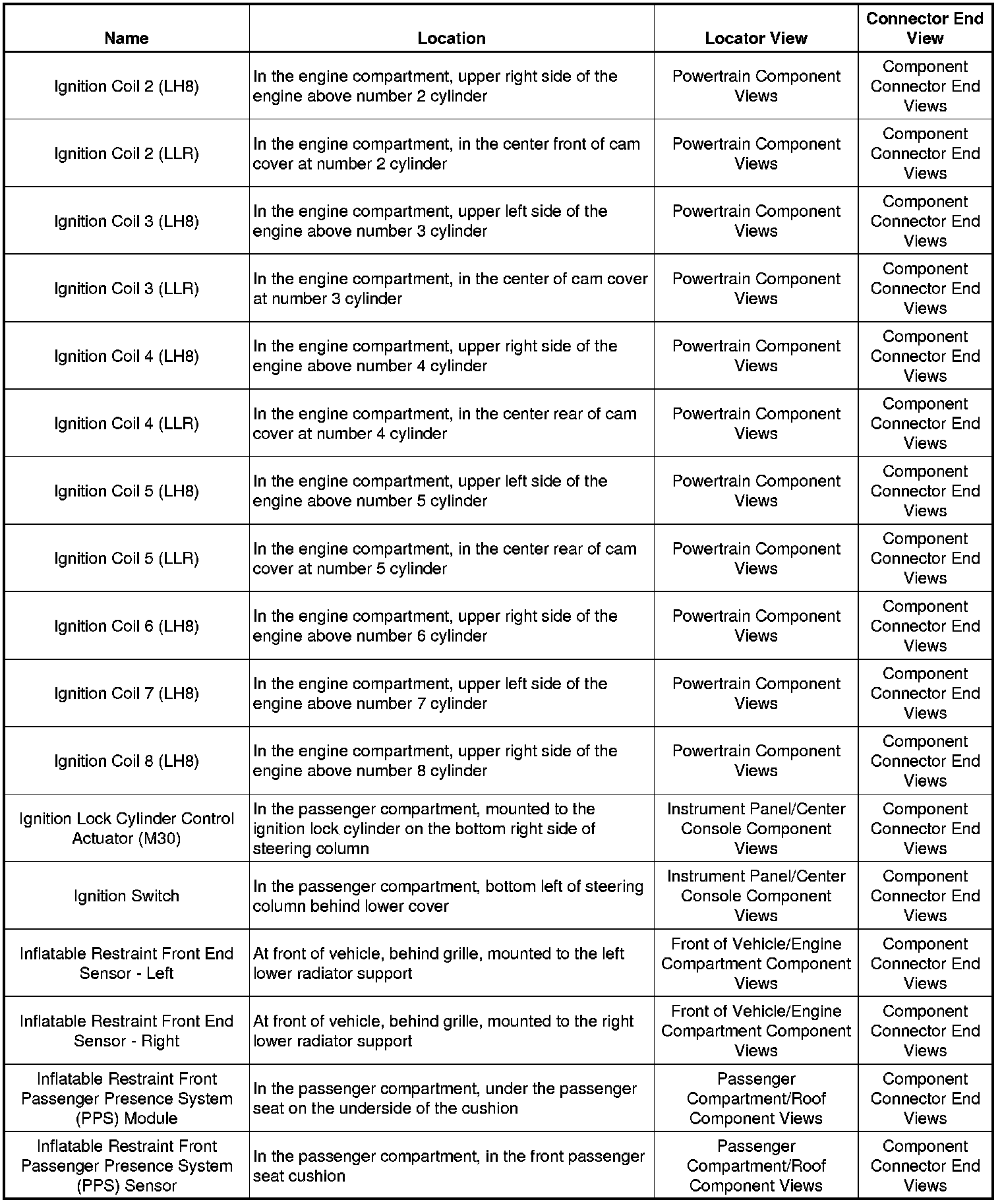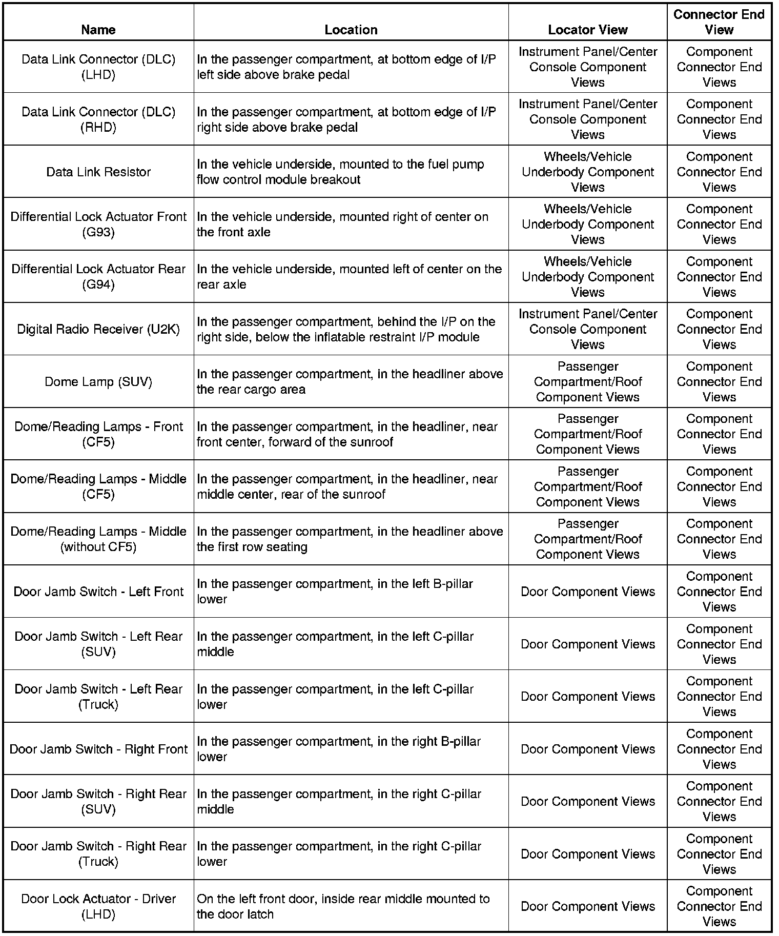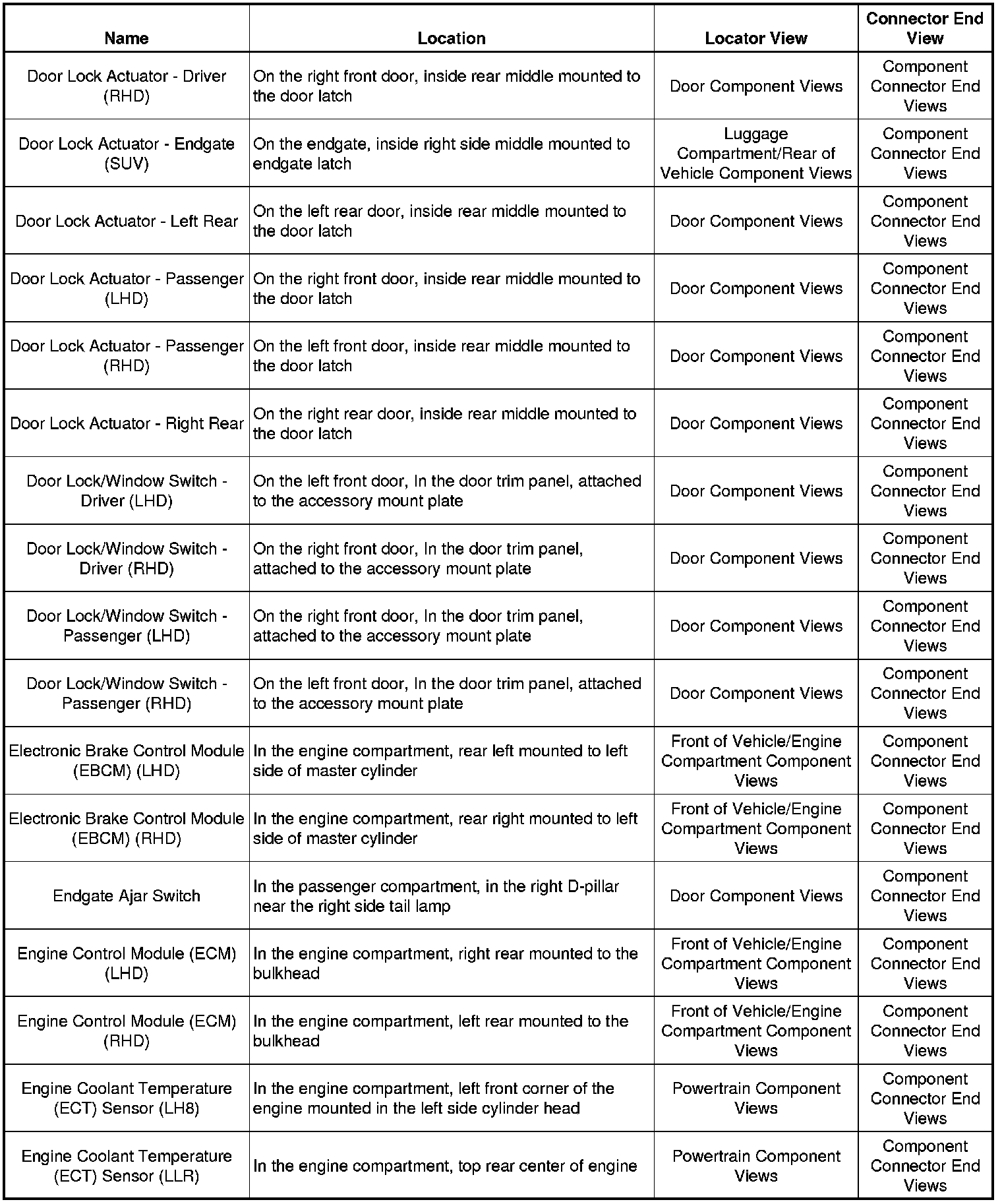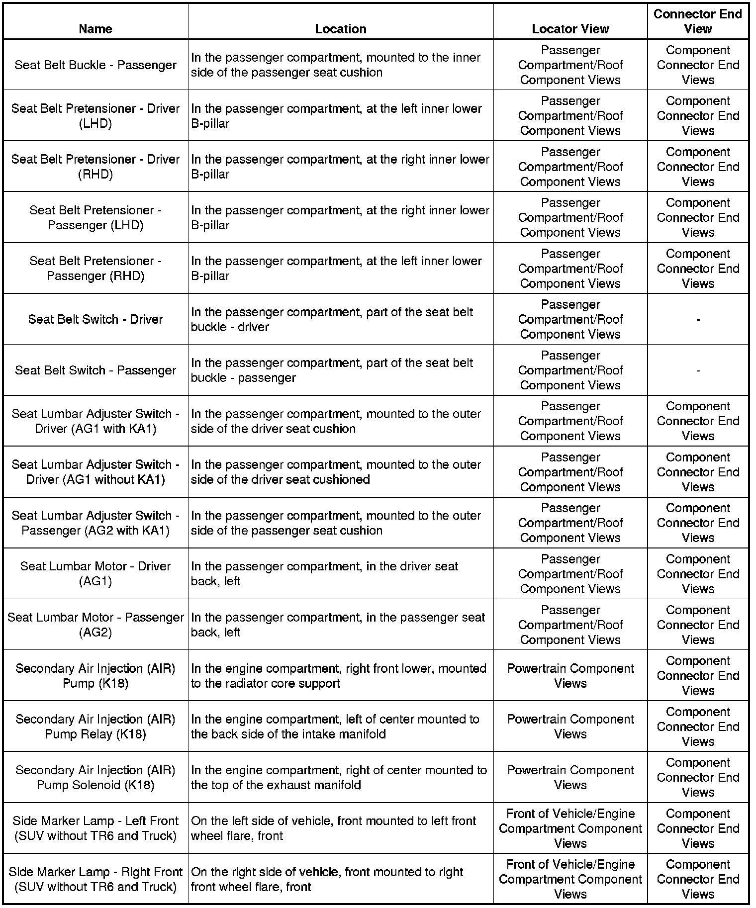 Master Electrical Component List