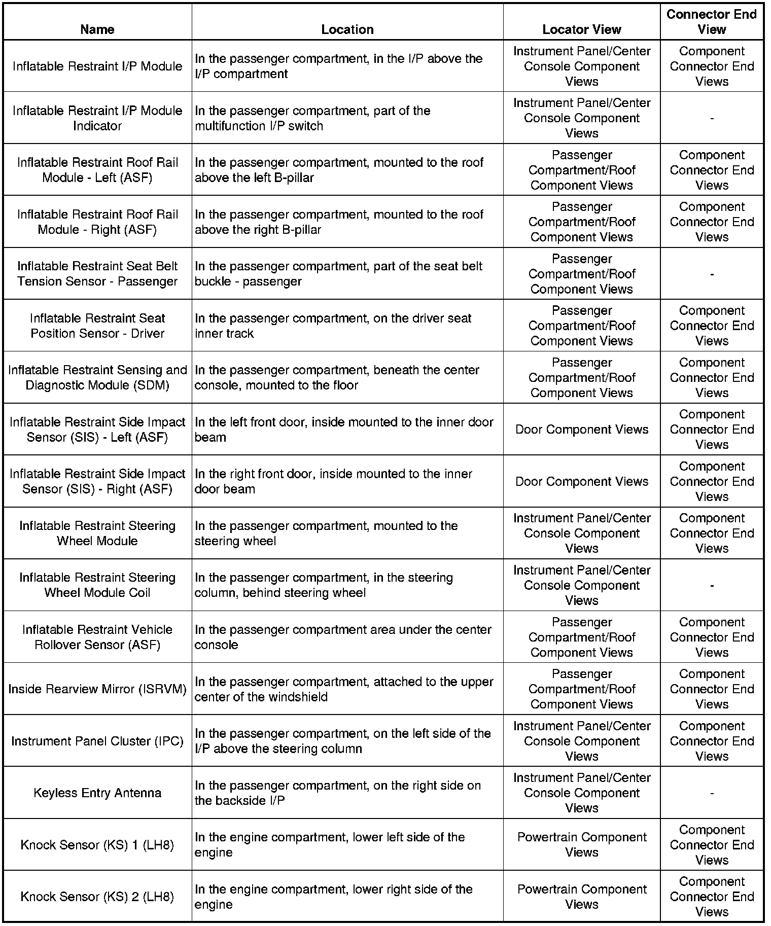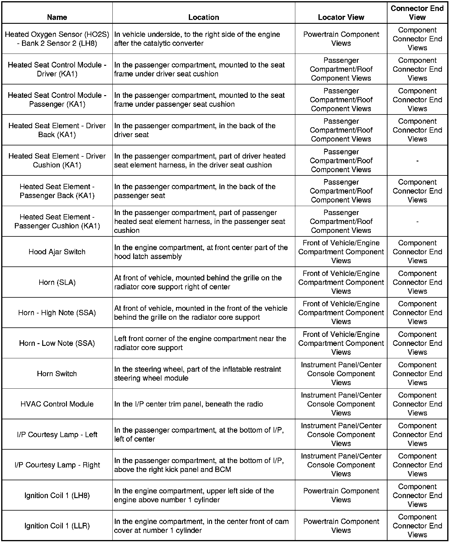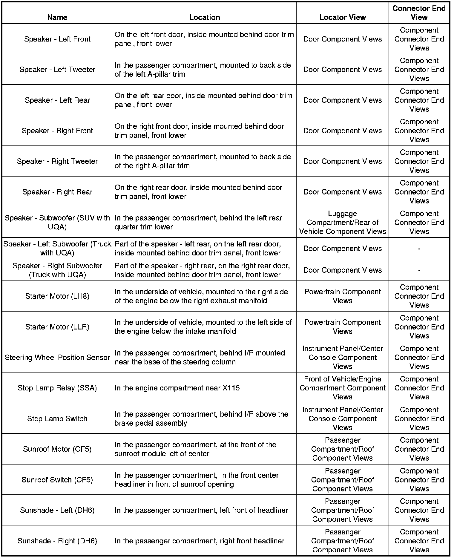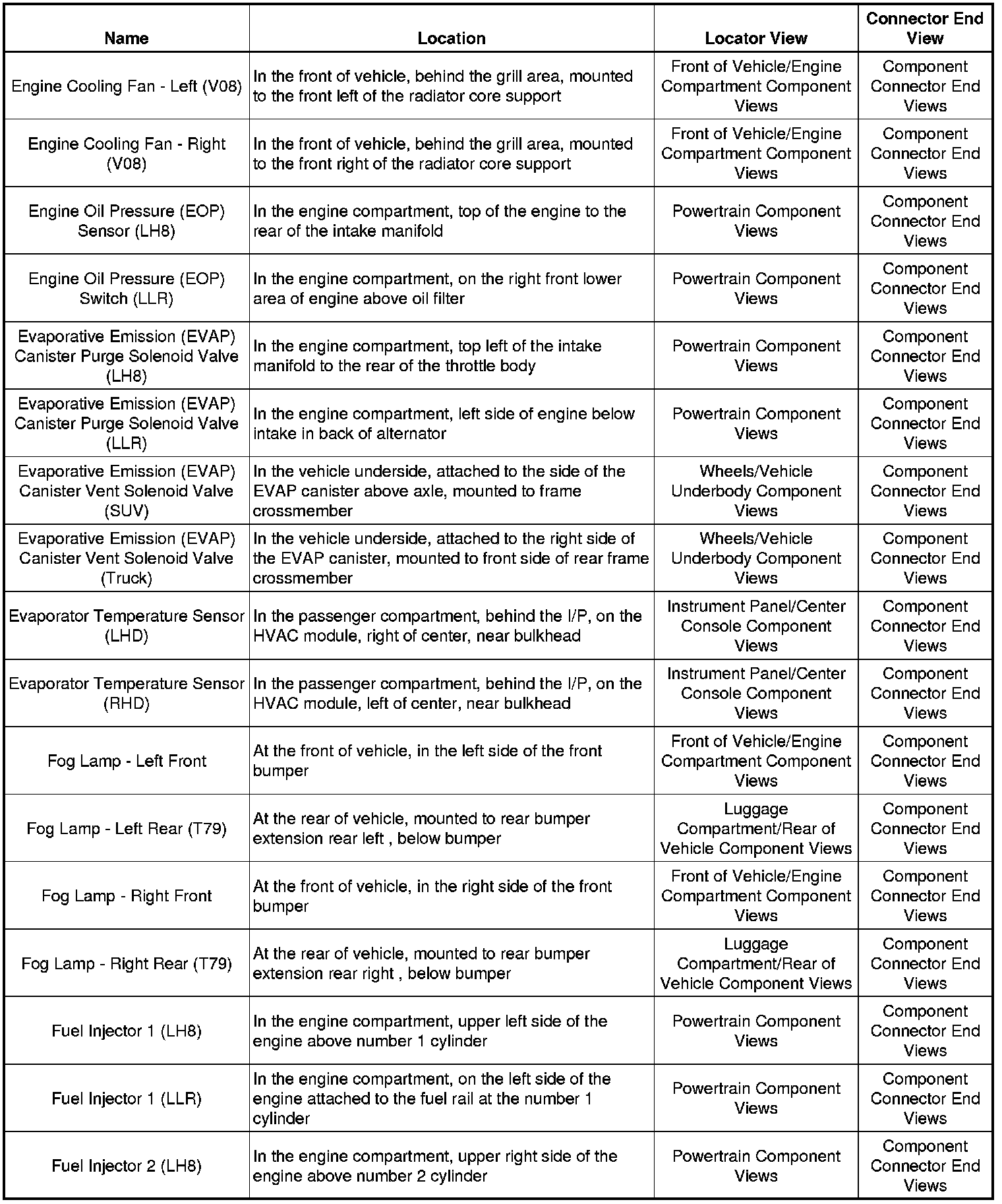 Master Electrical Component List