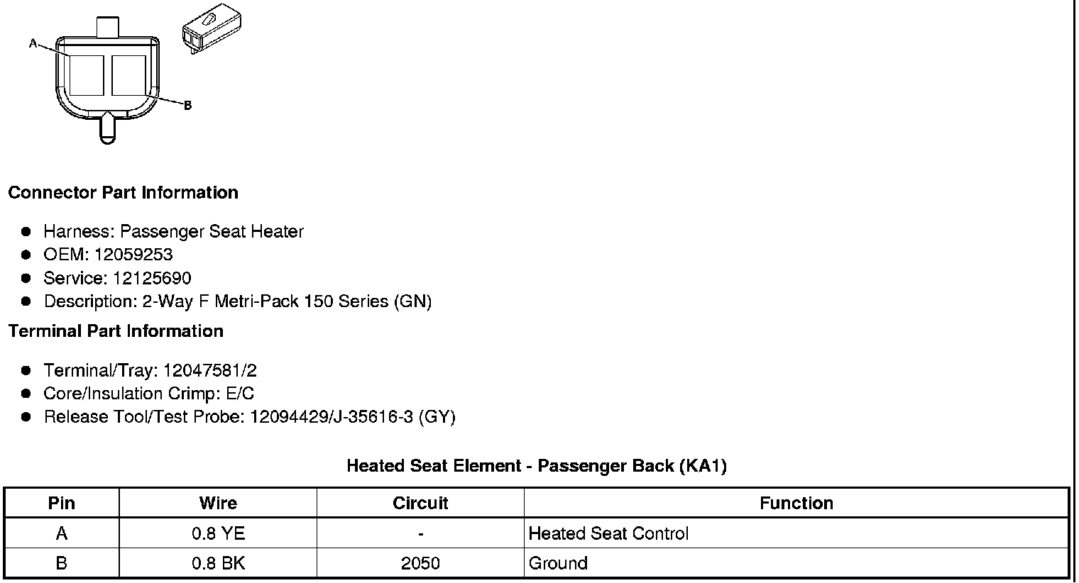 Heated Seat Element - Passenger Back (KA1)