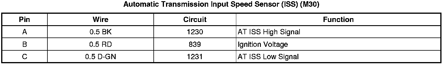 Automatic Transmission Input Speed Sensor (ISS) (M30)
