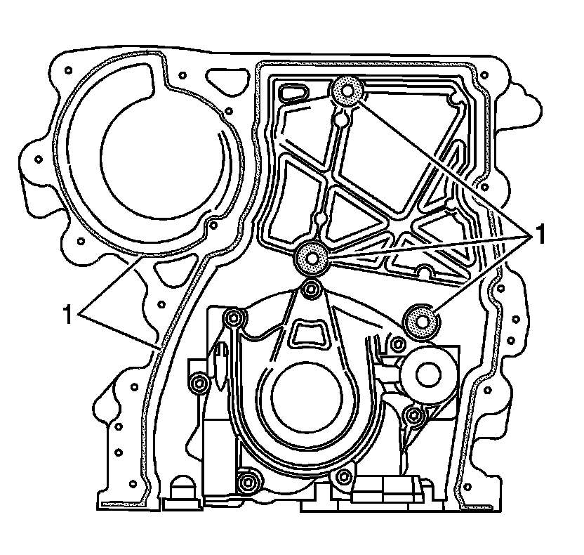 3. Apply a 3 mm (0.12 in) bead of sealer to the engine front cover (1). Refer to Adhesives, Fluids, Lubricants, and Sealers (Sealers, Adhesives, and Lubricants).