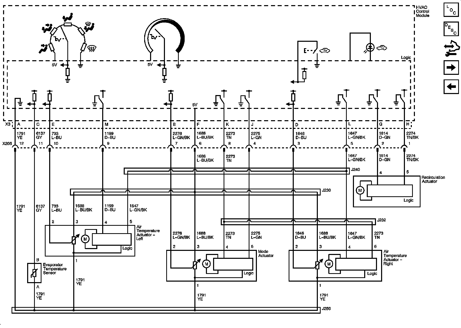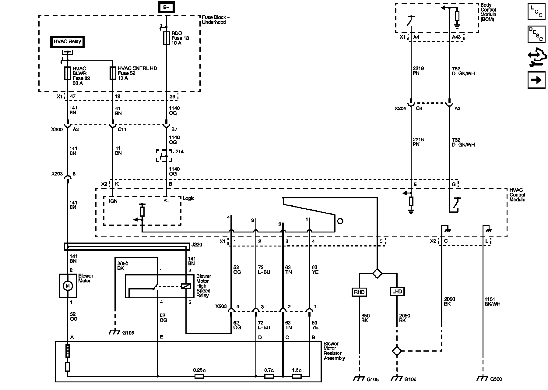 Module Power, Ground, Serial Data, and Blower Controls (Left Hand Drive)
