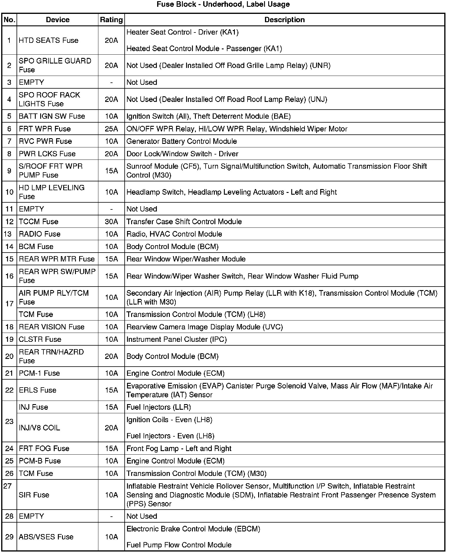 Fuse Block - Underhood, Label (SSA)