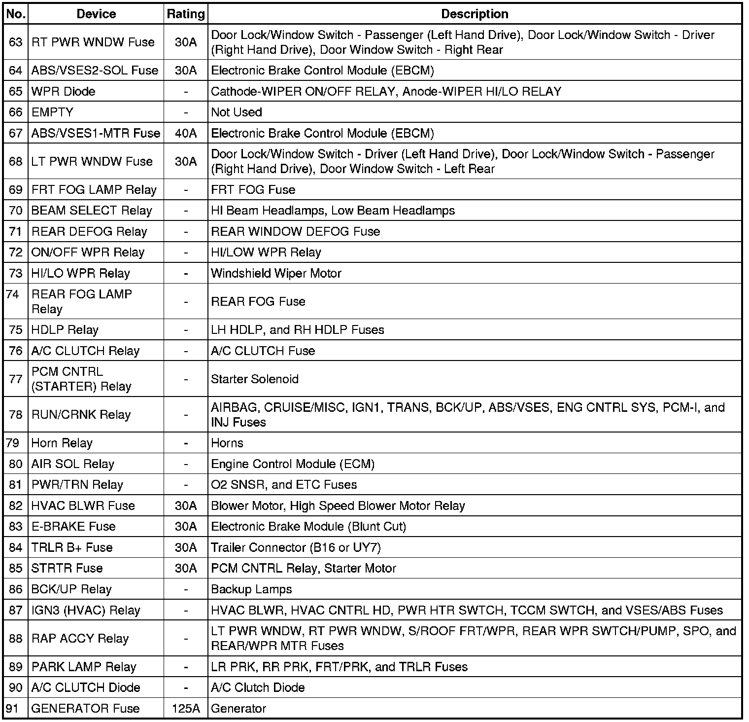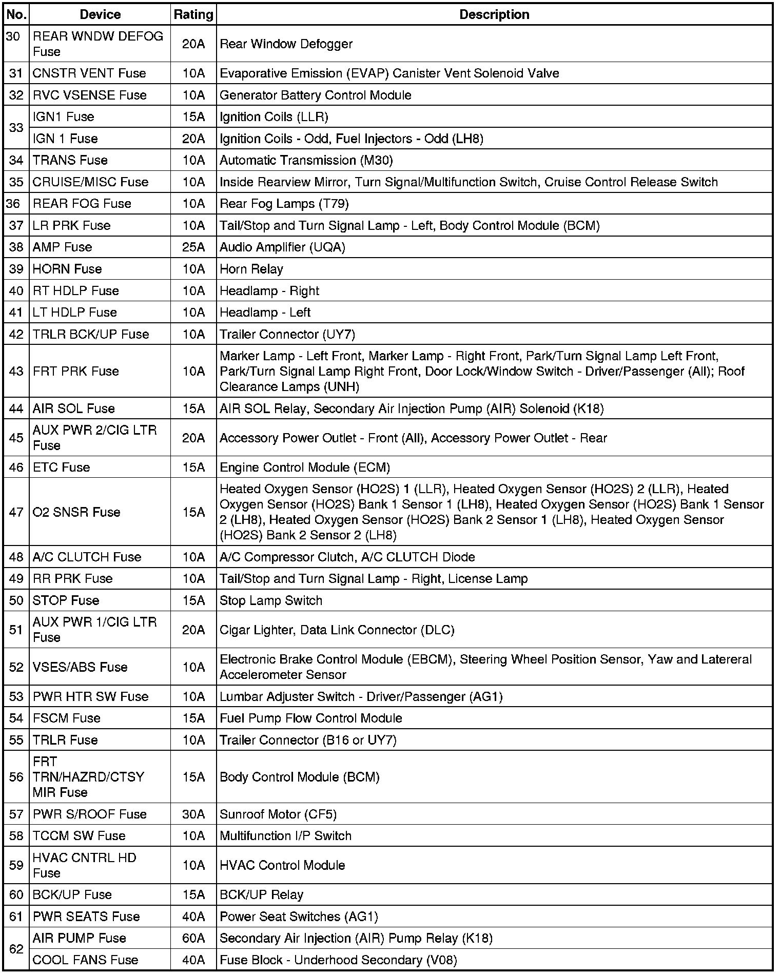 Fuse Block - Underhood, Bottom View