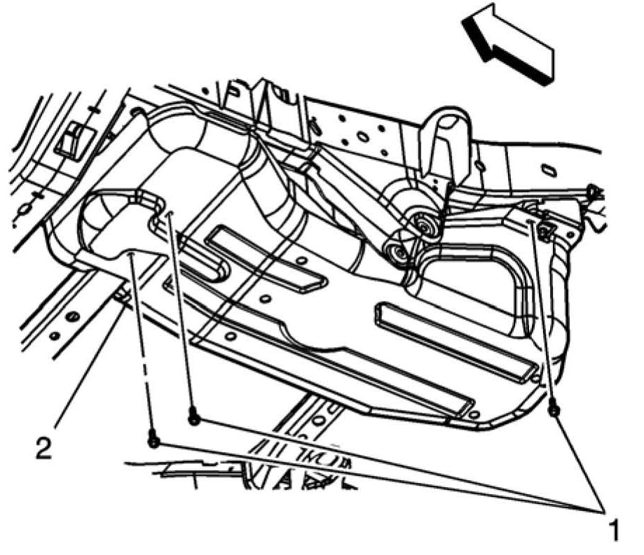 13. Install the fuel tank shield lower bolts (1) and tighten to 10 Nm (89 lb in).