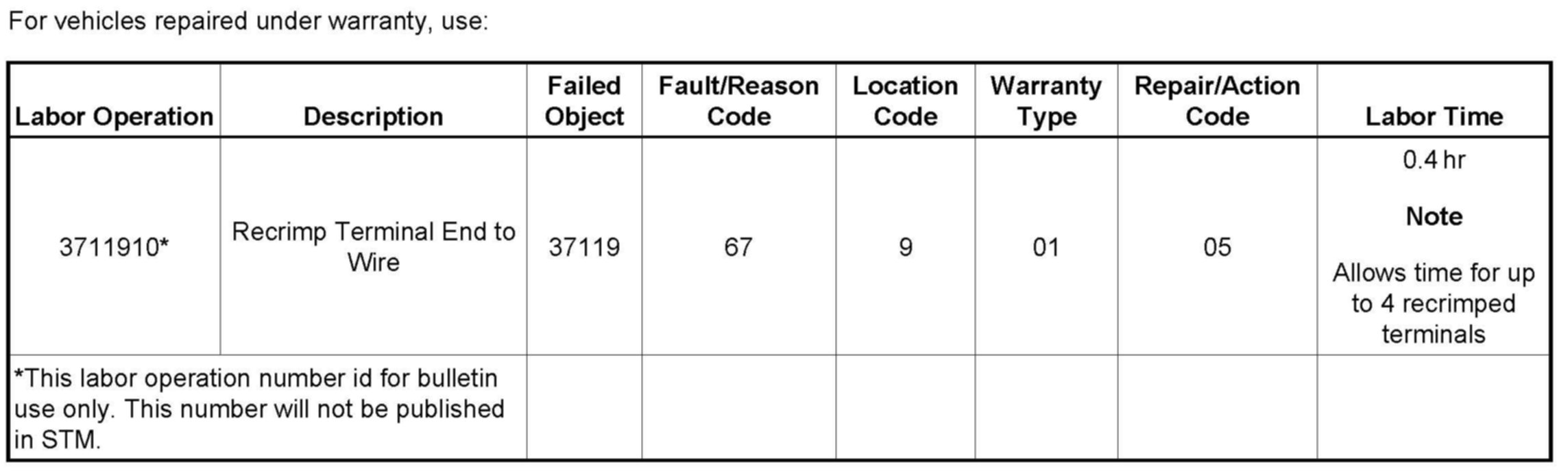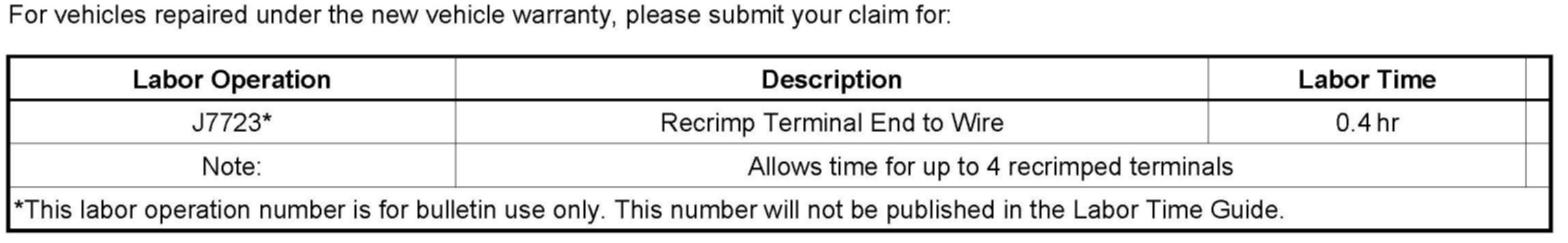 This bulletin is being revised to add additional information and to provide a dedicated Labor Operation for Recrimping Electrical Terminals. Please discard Corporate Bulletin Number 08-06-03-009 (Section 06 - Engine/Propulsion System).