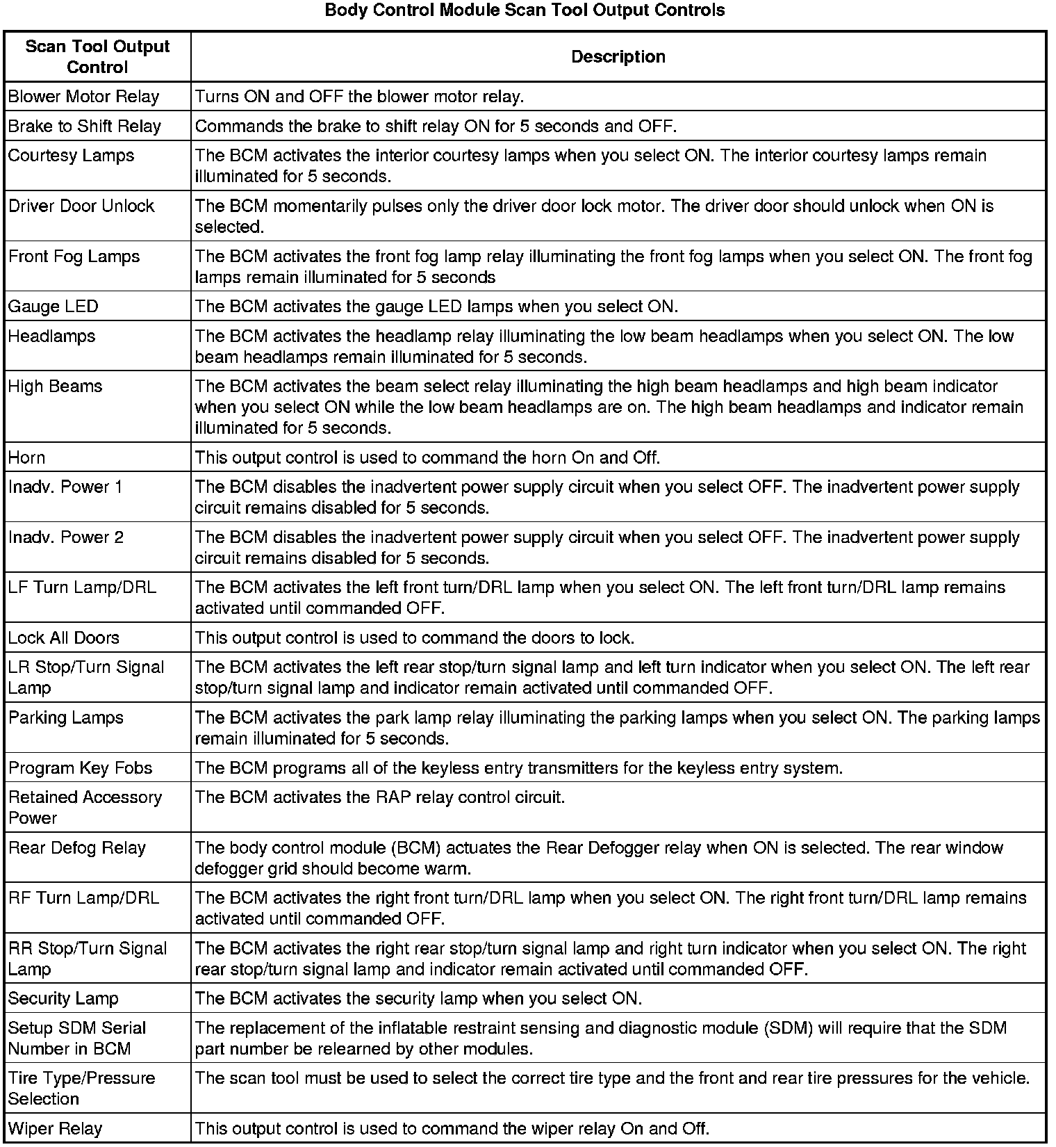 Body Control Module Scan Tool Information