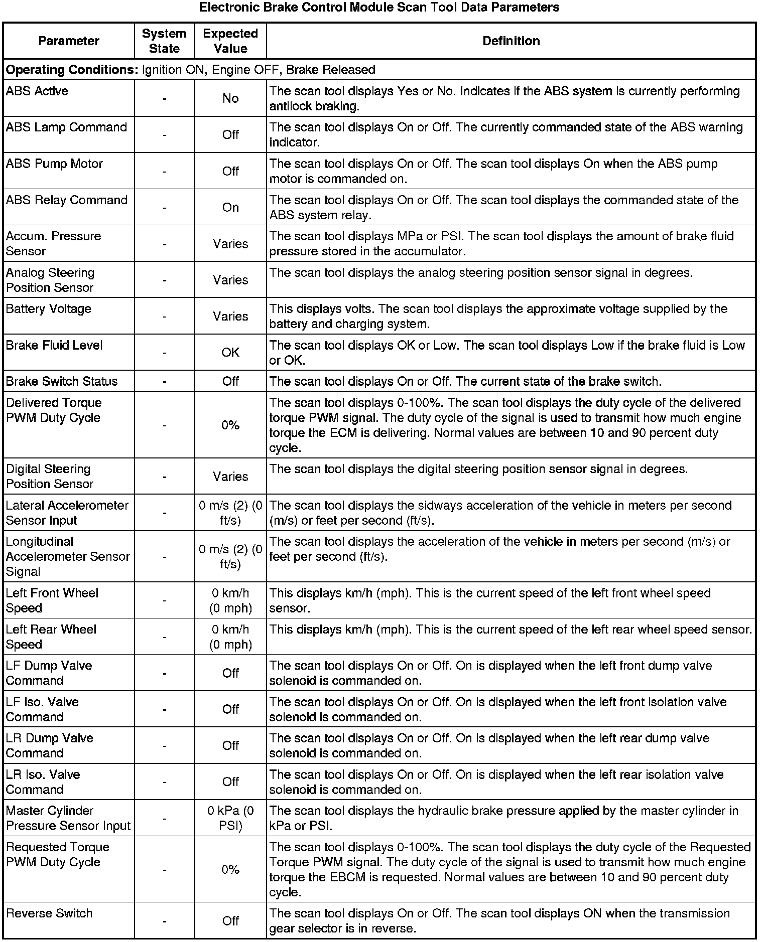 Electronic Brake Control Module Scan Tool Information