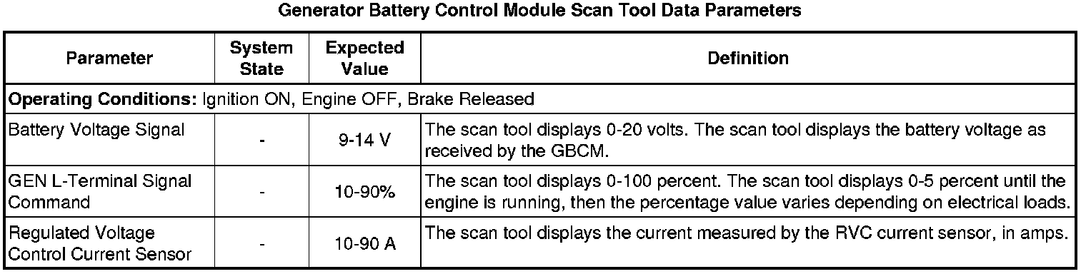 Generator Battery Control Module Scan Tool Information
