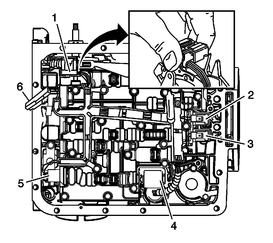 Caution: Be sure all solenoids are installed with the electrical connectors facing the non-machined (cast) side of the valve body; otherwise, the solenoids will bind against the transmission case as the valve body bolts are tightened and damage may occur.