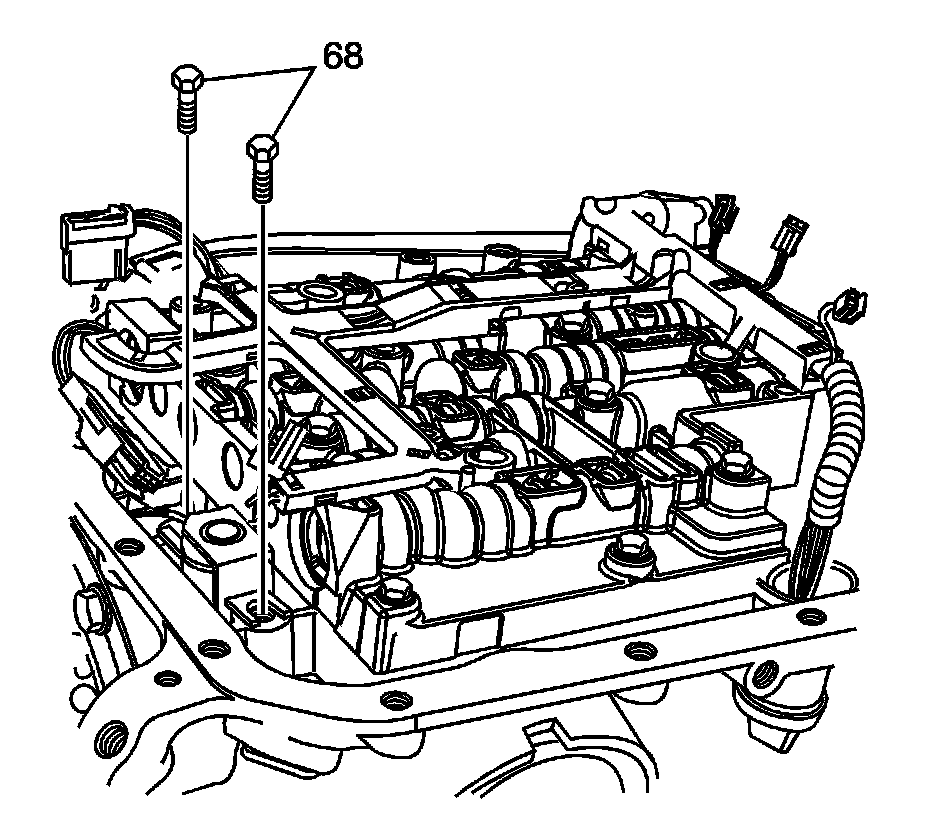 11. Install the torque converter clutch (TCC) solenoid valve and bolts (68). Tighten the bolts to 8-14 Nm (6-10 lb ft).