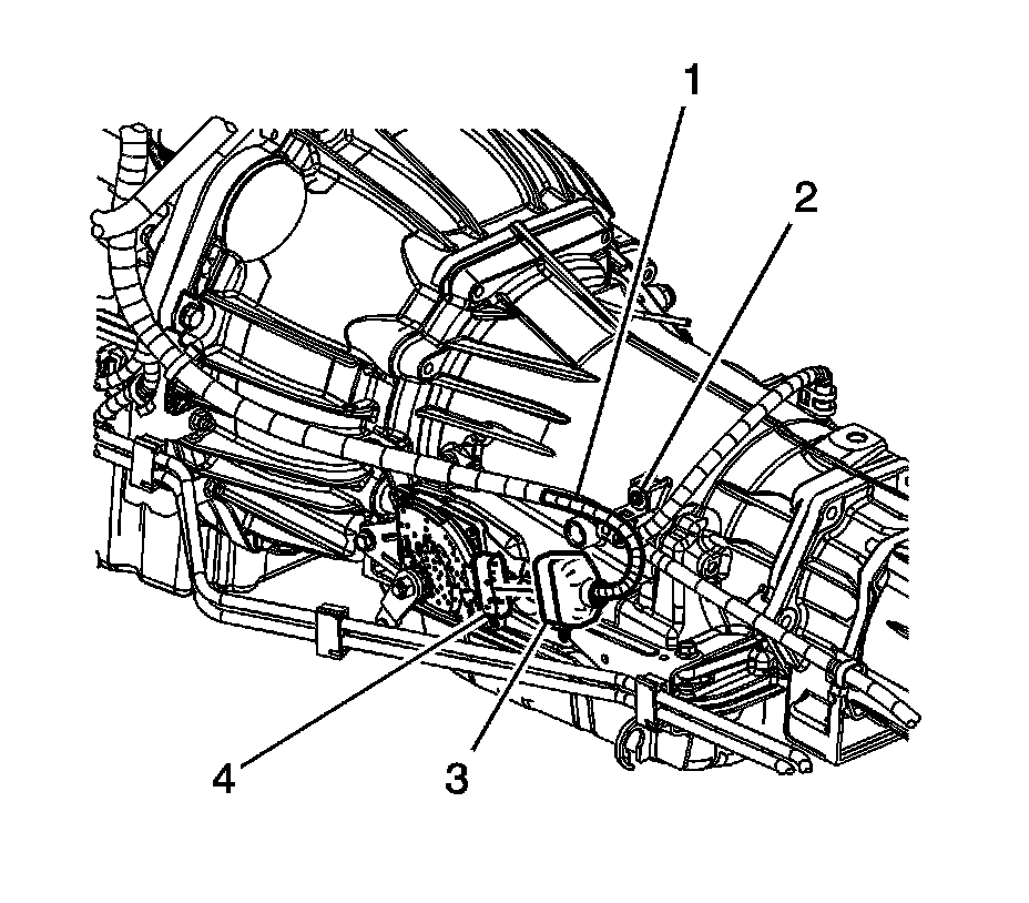 21. Disconnect the transmission oil cooler pipes from the transmission ONLY. Refer to Transmission Fluid Cooler Hose/Pipe Replacement (Transmission Fluid Cooler Hose/Pipe Replacement).