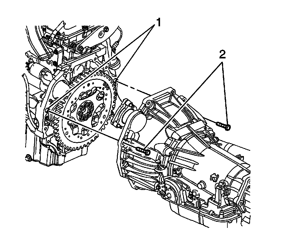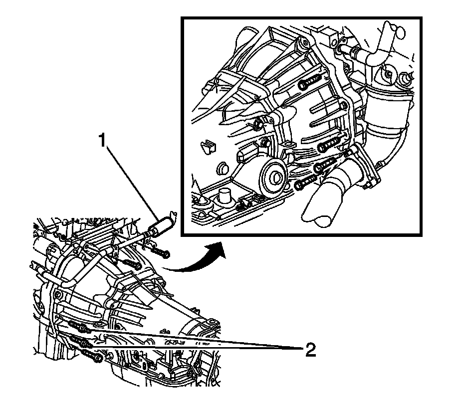 5. Install the 2 transmission mounting bolts (2).