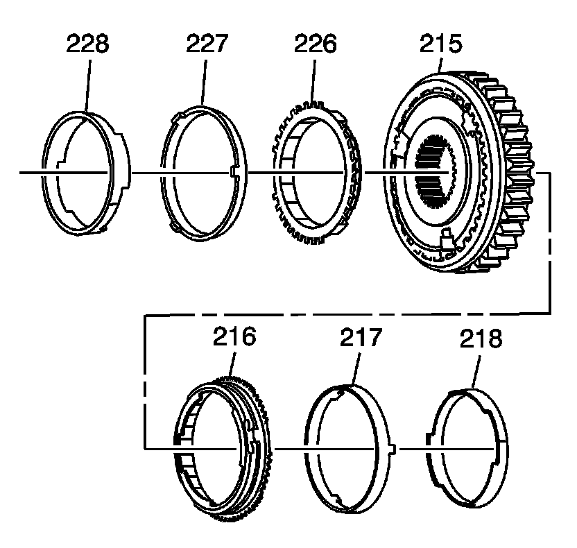 Important: When you service the synchronizers, retain them in the order that they are removed. Keep the synchronizer components together and mark to identify the correct location.