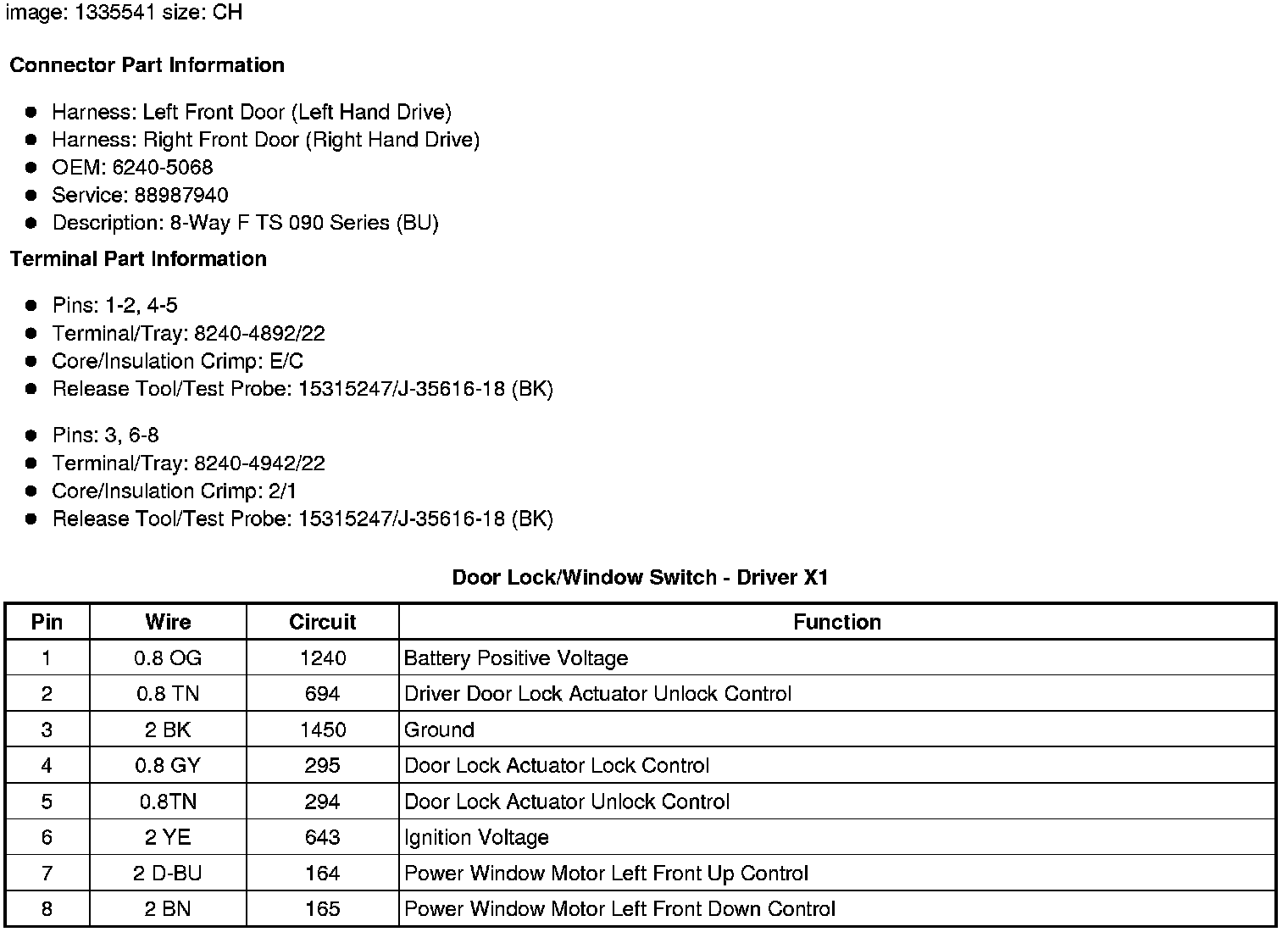 Door Lock/Window Switch - Driver X1