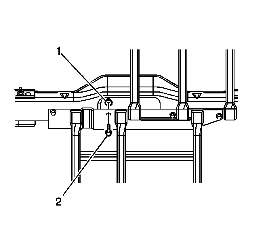 2. Install the bolts (1) securing the rear catalytic converter guard to the frame crossmember.