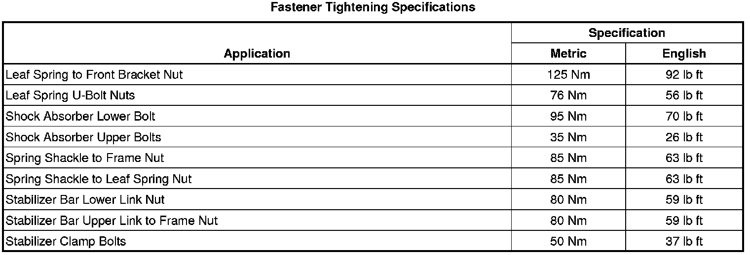Fastener Tightening Specifications