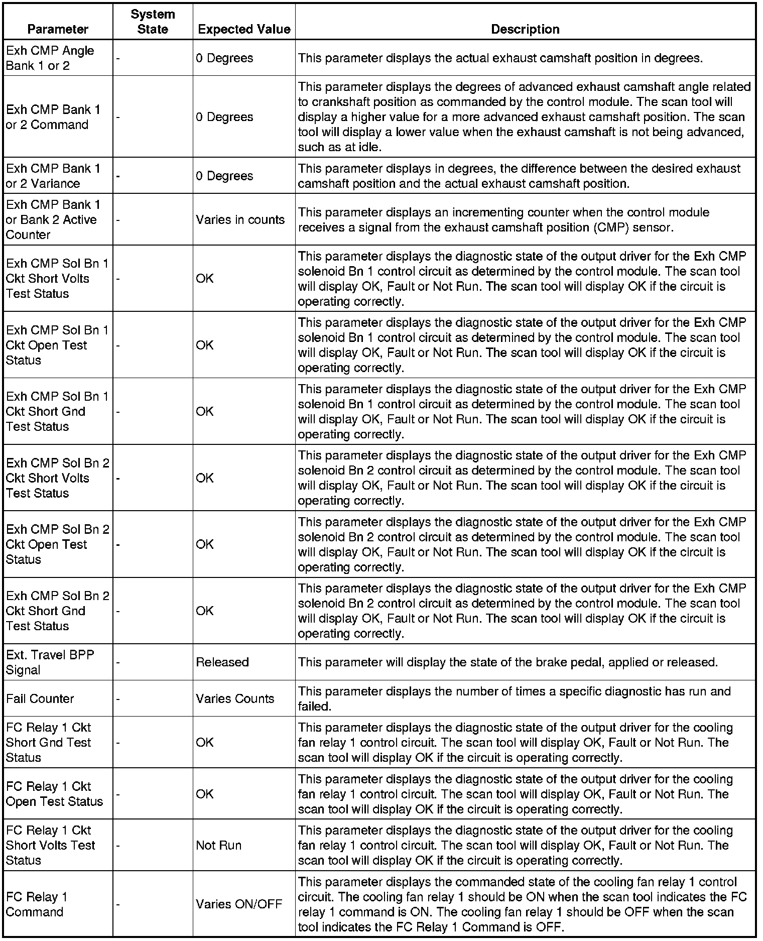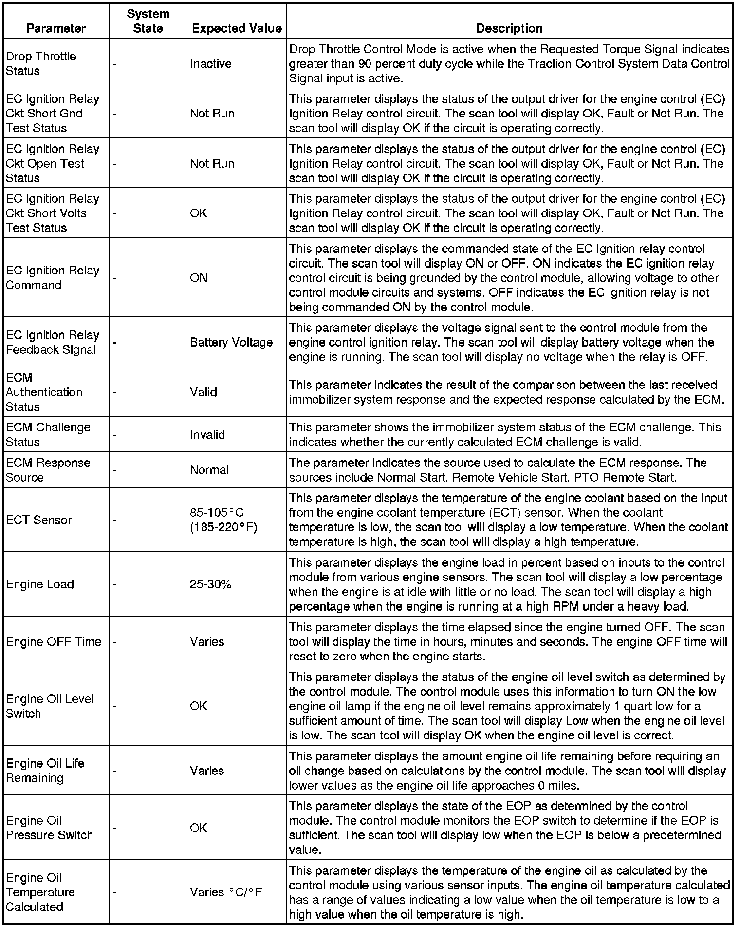 The Engine Control Module Scan Tool Data List contains all engine-related parameters that are available on the scan tool. The list is arranged in alphabetical order. A given parameter may appear in any one of the data lists, and in some cases may appear more than once, or in more than one data list in order to group certain related parameters together.