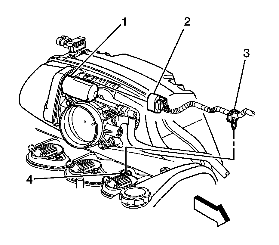 46. Connect the MAP sensor wiring harness retainer (4) to the intake manifold.