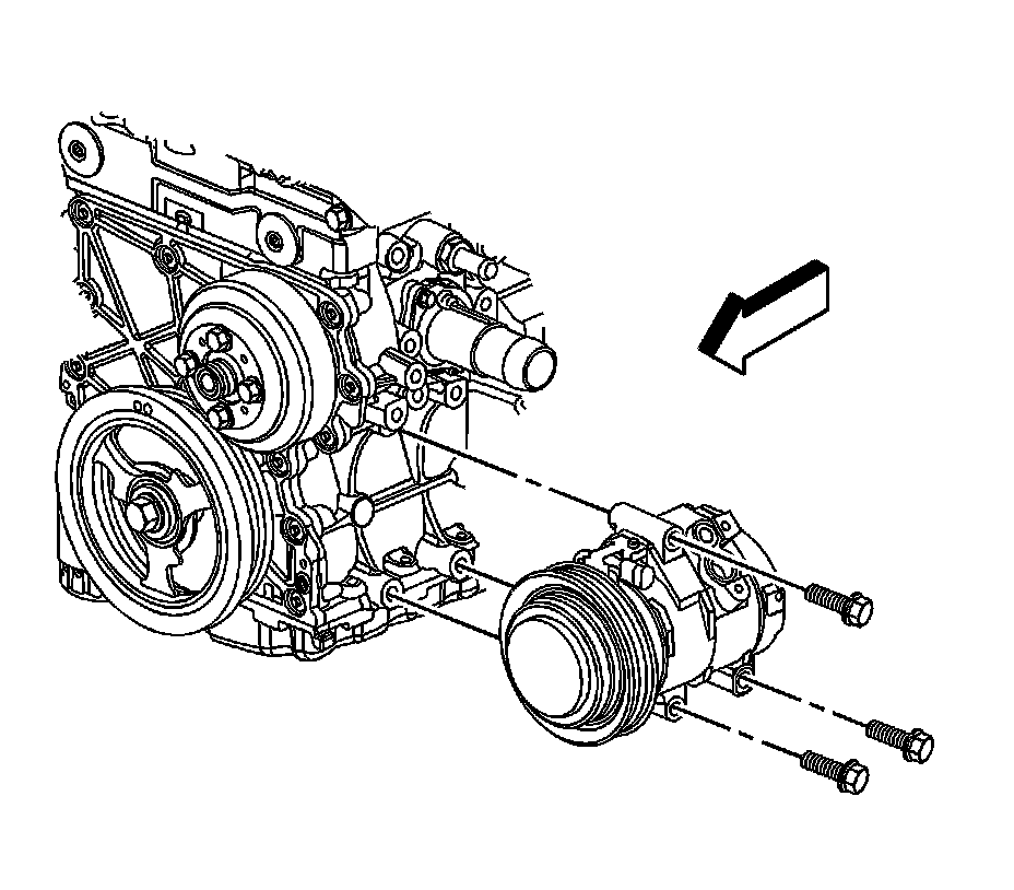 60. Position the A/C compressor evaporator hose bracket to the cylinder head and install the bolt. Tighten the bolt to 9 Nm (80 lb in).
