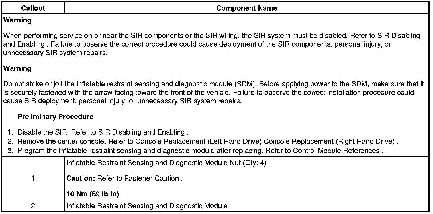 Inflatable Restraint Sensing and Diagnostic Module Replacement