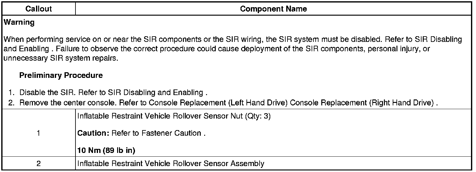 Inflatable Restraint Vehicle Rollover Sensor Replacement