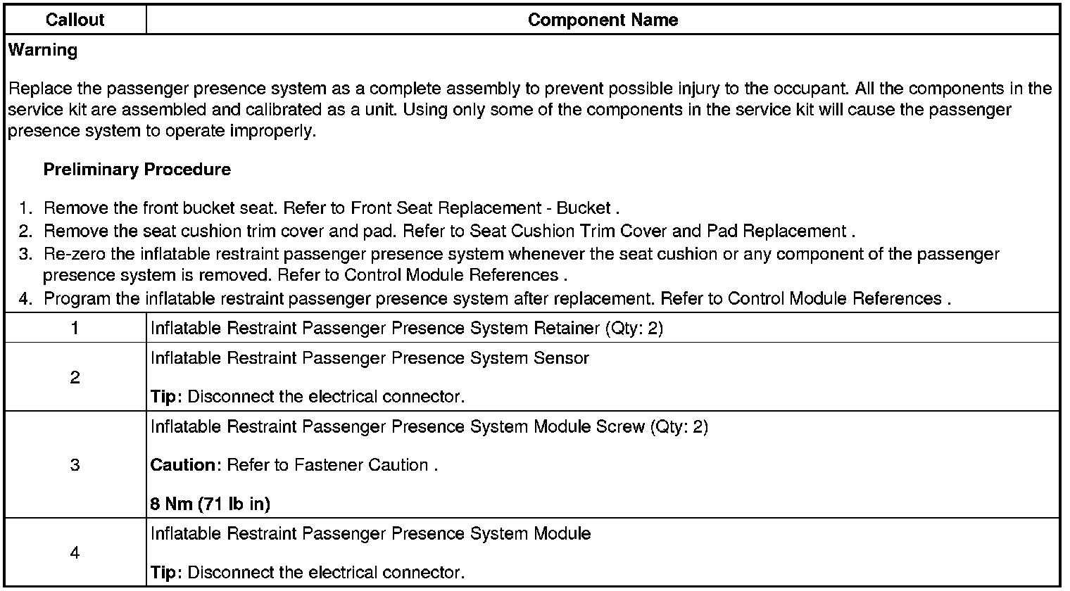 Inflatable Restraint Passenger Presence System Replacement - Front