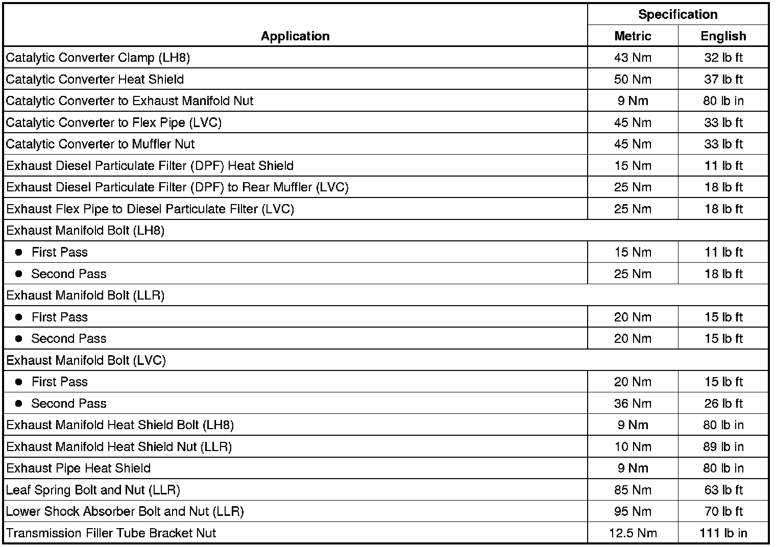 Fastener Tightening Specifications