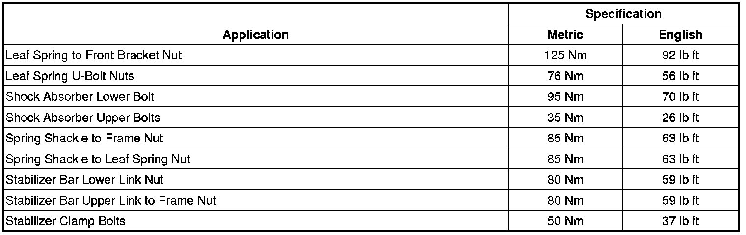 Fastener Tightening Specifications