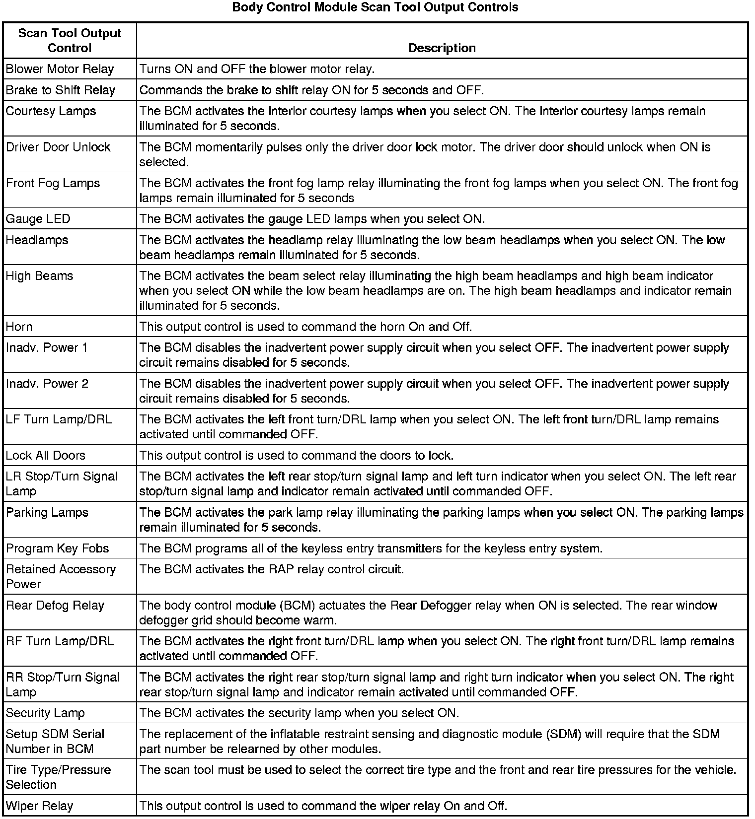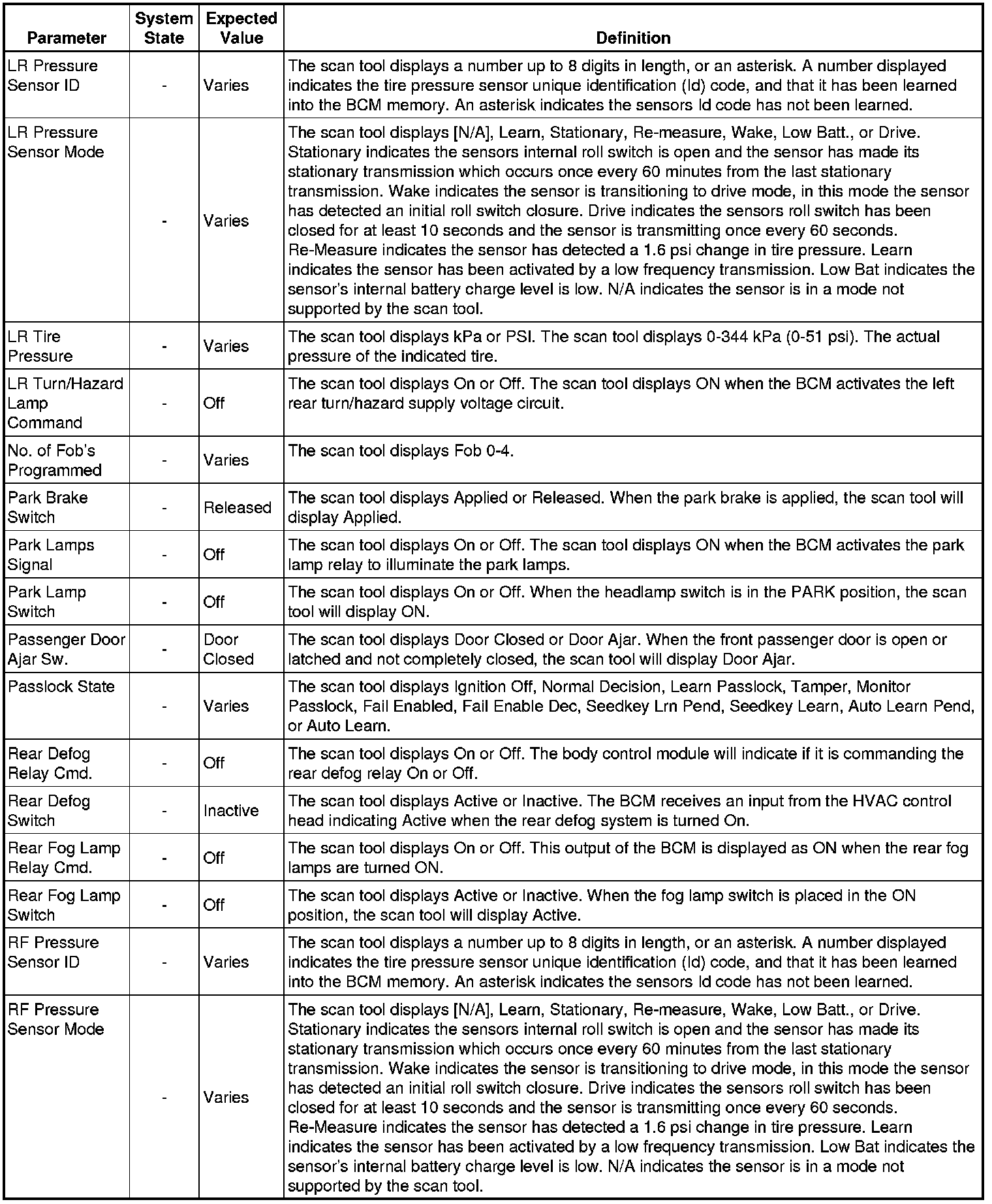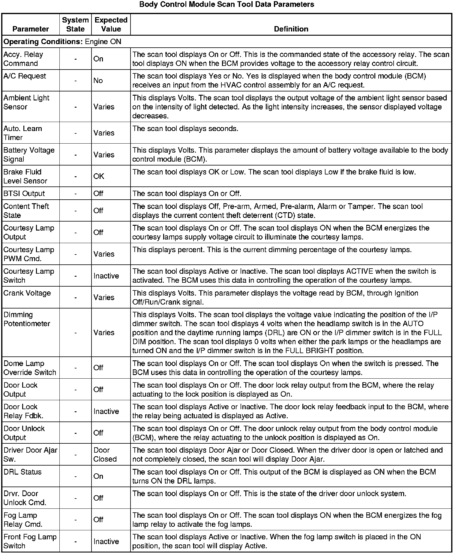 Body Control Module Scan Tool Information