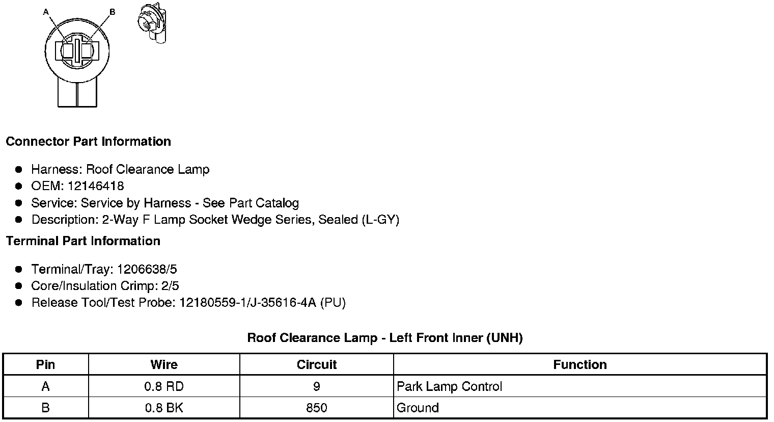 Roof Clearance Lamp - Left Front Inner (UNH)
