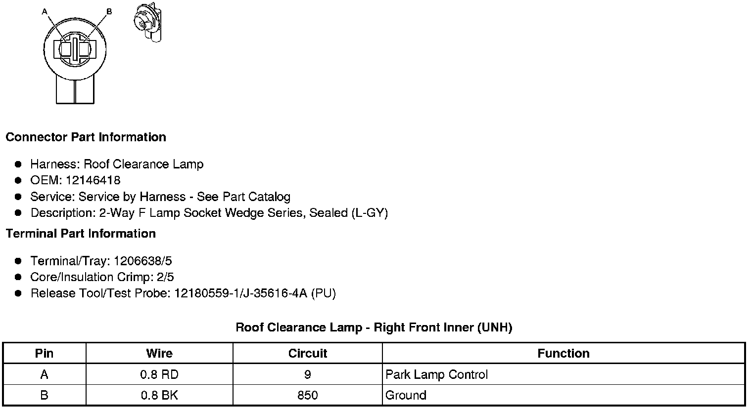 Roof Clearance Lamp - Right Front Inner (UNH)