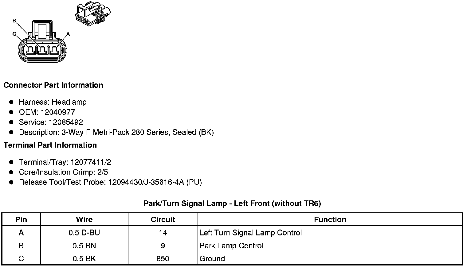 Park/Turn Signal Lamp - Left Front (without TR6)