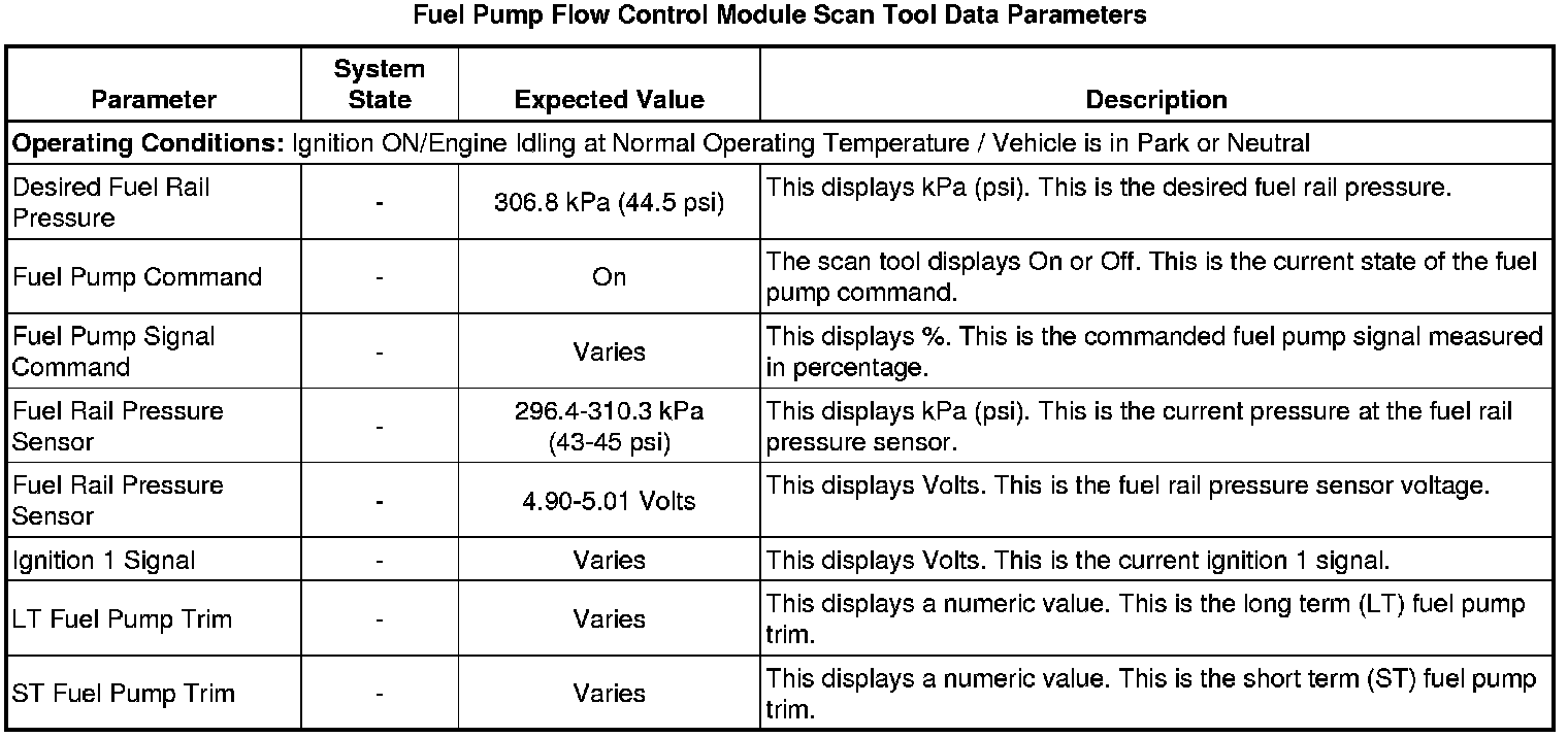 Fuel Pump Flow Control Module Scan Tool Information