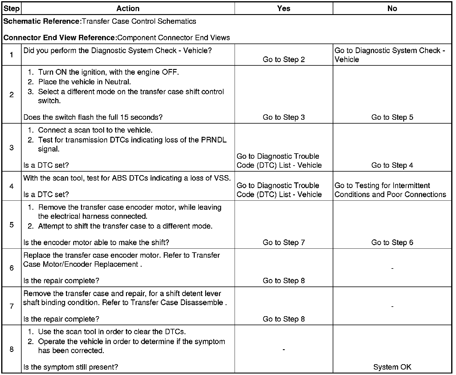 5. This step determines if the condition is caused by a faulty encoder motor or a mechanical internal fault to the transfer case.