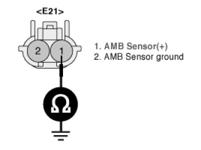3. Measure resistance between terminal "1" of ambient sensor and chassis ground.