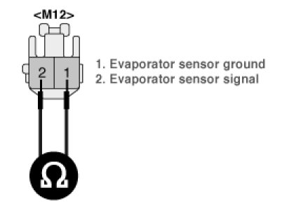 3. Measure resistance between terminal "1" and "2" of evaporator sensor.